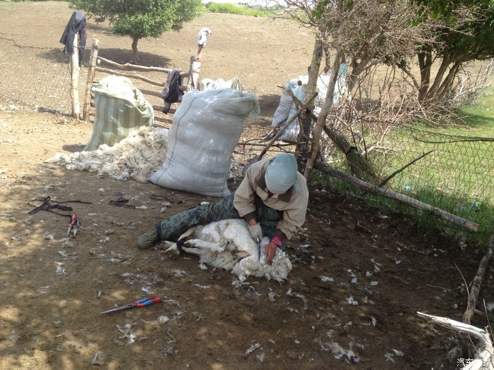 牧民剪羊毛!据牧民讲现在羊毛价格才3块多一斤!真心便宜啊!不知道市场上老贵的羊毛制品的钱被谁赚了?