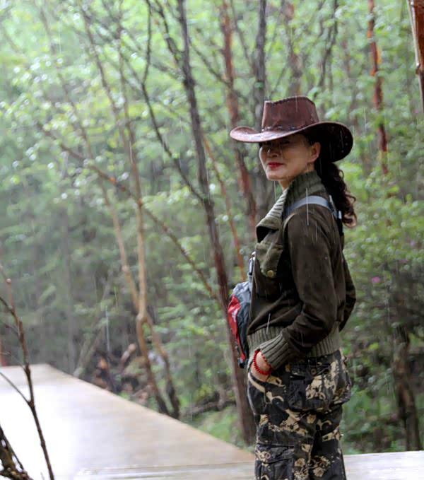 伞拍照、、、、佩服呀,雨只下了一小会,天又晴了。待我们再去长海,五彩池时,一会大雨,一会小雨,更