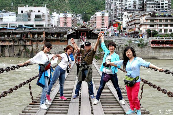 泸定桥,这们这路线总是碰上当年红军走过的足迹呀,在一座旧桥前拍照,认识了一个成都的帅哥,送给美女们一些橙