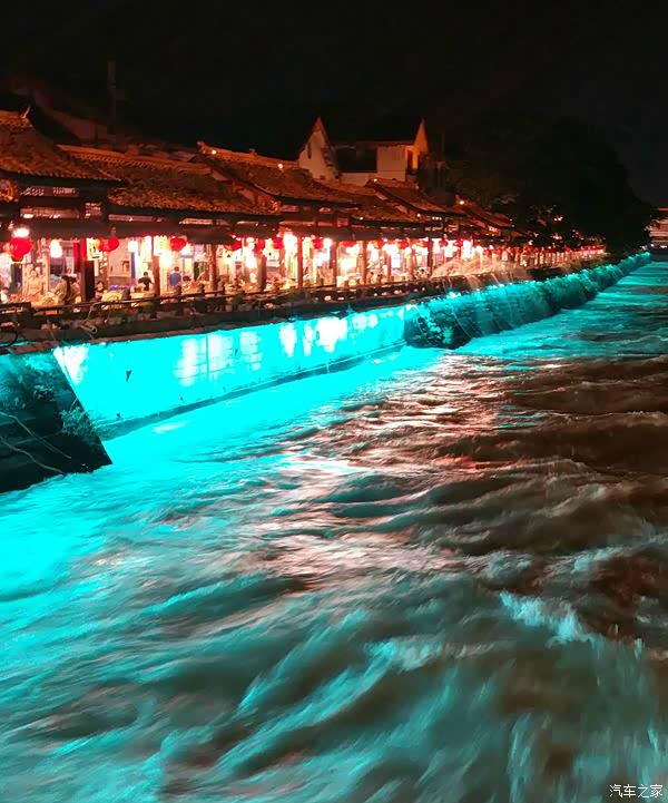 水很大,到处都有灯光。康定是出情歌的地方,还有很多情歌剧院,这区别于其他地方,远处的山峰印有的唐