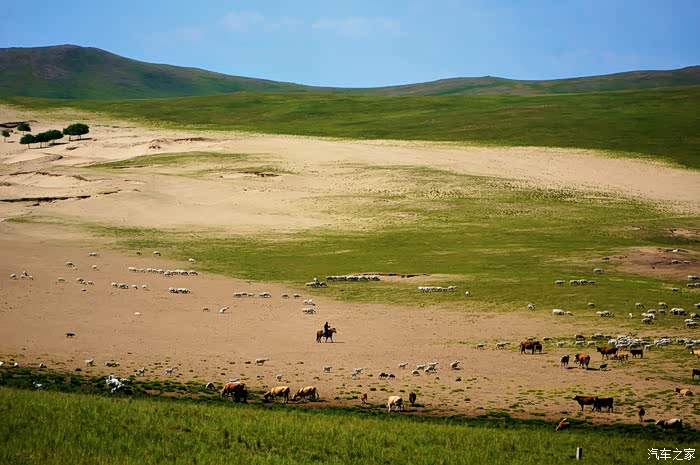 草原中突现大片沙漠与成群的牛羊,又吸引住了我们。