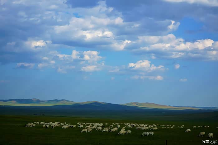 会不会是因为草原总是出现的那么突然,才让这么多人来到内蒙古寻找那片大草原呢?开了好几个小时烂路,我已经十分疲劳,无意中发现有一个路口可以开下草原,即使已经开过几十米我也在碎石烂路上调头回去看看。再烂的路也不能影响我们欣赏美景的心情。