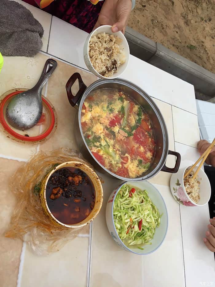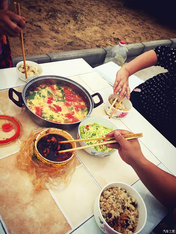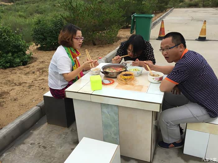 ,唉,看来与胡辣汤无缘啊,留下一个念想也好。我们和这家人也算有缘,前一天在榆林北做午饭时,原来他们也在那儿,不过他们在服务区的餐厅里,而我们在外面,所以我们不知道,而他们却对我们印象深刻