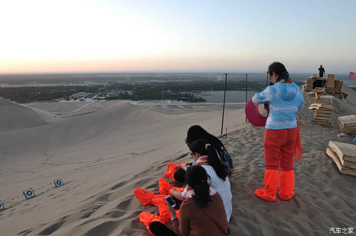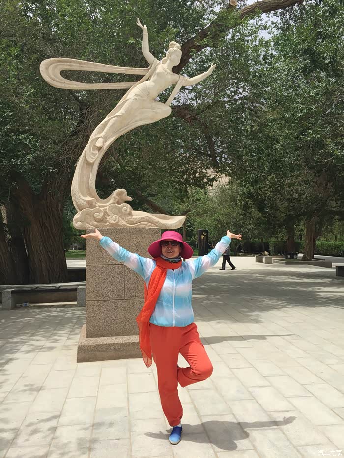 6月30日,西行第四十天,莫高窟、鸣沙山月牙泉、敦煌古城。今天就是敦煌一日游,上午10:10来到距离市区10公里的莫高窟数字展示中心,买了两张优惠半价票100元。时隔三年,莫高窟规范了许多,在数字展示中心买票,看了共40分钟的两场电影,摆渡车十几公里12:00到达景区,景区秩序井然,三年前都是游客自己到达景区,乱糟糟的到处都是人。景区里的讲解员都归莫高窟研究院管,讲解质量一流,参观的10个洞穴各个导游根据指令进行的,大佛和卧佛是每个队伍都要看的。参观回程时等景区大巴要排很长的队,管理还需仔细一点啊。回到宾馆后吃饭休息,下午晚些时候,先去18公里外的敦煌古城看看,敦煌古城是以前的敦煌城,保留着原来的面貌,在门口照了几张照片后赶去鸣沙山月牙泉,优惠票价60元。鸣沙山月牙泉是到敦煌必看的两个景点之一,晚些来一是不晒,二是看日落。进大门后先是乘坐电瓶车到月牙泉,因为太阳下山了美景就看不到了,看完月牙泉直接换骑骆驼到鸣沙山,到了骆驼终点站,买10元的票顺着梯子爬上沙丘顶部,敦煌市就在沙丘不远处,大自然真神奇,这么近的地方,沙子为什么就停止不前了呢?此时太阳已经西斜了,待在沙丘上不一会,太阳就开始下落了,可惜万里无云,没有火烧云的效果,平平淡淡的景色,日落真不美,还不如有时在路上看到的日落,站在沙丘顶上看日落也是一种体验吧。看完日落后就要滑沙下来,要是不敢滑就得原路从梯子下去。滑下沙丘后骑骆驼返回到大门口,此时天已经黑下来了,敦煌一日游到此结束。骑骆驼、滑沙、看日落,能玩的都玩了,滑翔机和沙地摩托没敢尝试。在景区门口买了一点汉堡,回到宾馆已经11点了。