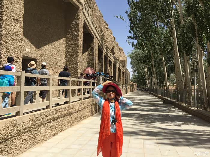 6月29日,西行第三十九天,吐鲁番—敦煌。吐鲁番有葡萄沟、坎儿井、交河古城和火焰山,我俩来过不止一次了,最具有程序化的是葡萄沟。导游随便带进一户葡萄人家,主人热情迎接、上葡萄干品尝、切西瓜款待、跳新疆舞互动,接下来重点是推销不是一般贵的葡萄干。不在吐鲁番耽搁了,今天目的地是敦煌,出疆的这条路基本是大风伴随着,车子被刮的东倒西歪的,不用双手逮着方向盘都不行。在一个风口突然一声响吓我一跳,我以为碰到啥了,赶紧停车,顶着狂风围着车子转了一圈,没发现问题啊,后来洗车时发现我自己安装的车窗雨眉被大风挂掉一个。13:55来到了星星峡收费站,这是出新疆的收费站。14:50进入甘肃收费站,出收费站不远就来到柳园。从连霍高速有两个出口可以到敦煌,从新疆来就是走柳园出口,从张掖酒泉过来就走瓜州出口,两个出口距离68公里。我们当然是从柳园出口下高速了,出收费站往敦煌去的时候傻眼了!120公里的道路改造,告示牌推荐两条路,一条是从瓜州绕行,一条是沿修路的便道。功课没做好啊,看到路基本修好了,问了一下从敦煌过来的车说可以通行了,就绕开隔离桩强行开上去了。路修的是好,宽阔平整,还没来得及画标志线,也没有探头,放开了跑。开到一半被拦下,要我们退回去绕道走,妈呀!这半夜也到不了啦,好说歹说,看闸门的大爷要两个买水钱,立马塞上放行了。网定敦煌格林豪泰酒店2天,标准间,共336元。住下后前台小妹告诉我们参观敦煌要预约,功课又没做好,好在小妹很热情,帮助我们在网上预约成功,明天11点的一场。敦煌也热得够呛,好好休息一下,明天游玩一定很累的。