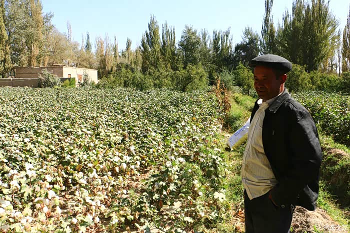 。开场白后,大叔话匣子也一下打开了,他在田里摘了一朵棉花主动给我介绍棉花的整个种值过程,质量分辨,种子价格等各个方便,全方位给我来了一堂生动的棉花专题培训课,真是受益匪浅。老婆催得不行,只能意犹未尽的向大叔告别,告别时我说可以给您拍张照留作纪念吗?大叔非常爽快答应,主动摆好了下面这个姿势,随着咔嚓一声画面永久定格