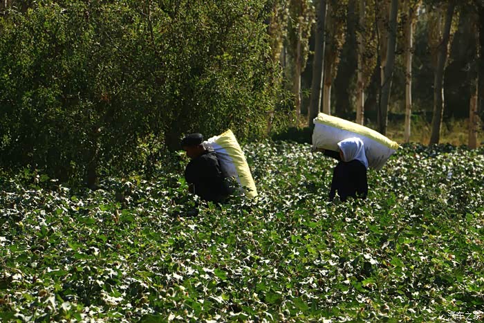 这位维族大叔专门扛着棉花向我走过来,人家心想”你丫在这里做什么,棉花有这么稀奇的吗,真没见过世面“。大叔实际是非常友好热情的一人,他稍微会点汉语,我们聊了好一会儿,直到老婆在车上等得不耐烦叫我了