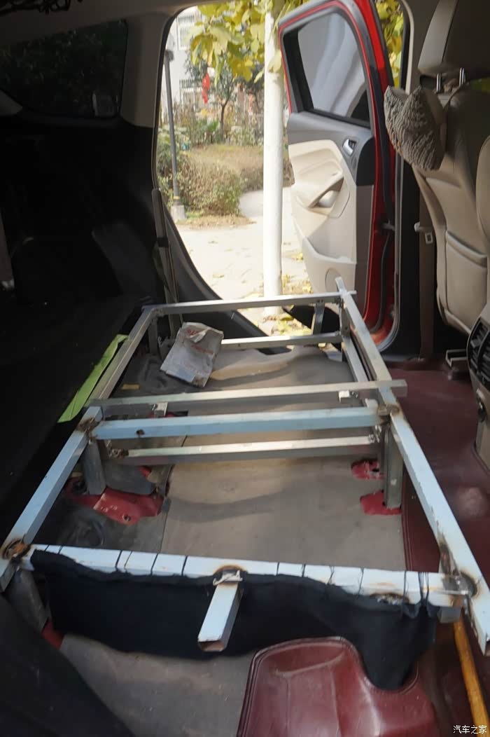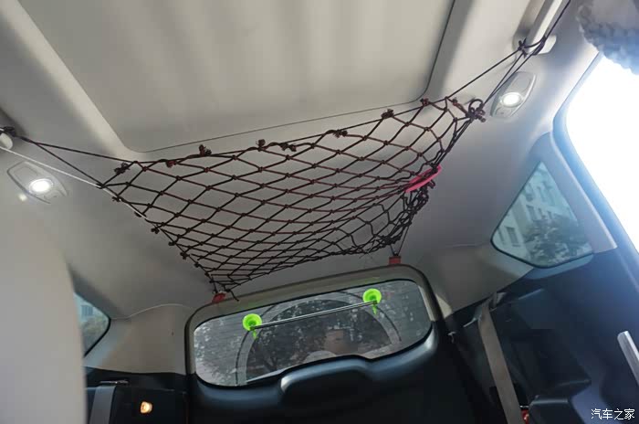 这一次对我的车还有一个小的改进,哈哈!车顶棚上加了一个网兜!这样我每次出去都要带的自制铝合金桌子不用带了,原来每天晚上睡觉时衣服都放在桌子上。腿放在桌子下面,一翻身就会碰到桌子,真不舒服。这下子睡觉舒服多了!