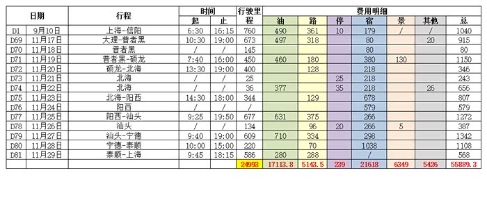 最后附上所有人都关心的行程及费用表(其中不包括饮食购物)。