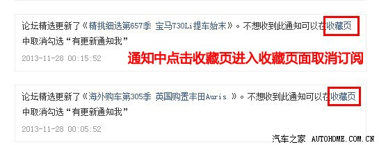 3、在通知中点击“收藏页”进入收藏页面取消订阅