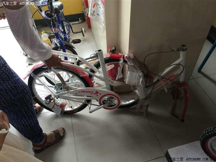 在组装的时候我女儿相中了一辆小自行车,然后果断选色给女儿也提一辆吧。。。看着这款白红色的不难看,让他们一块组装起来了。。。也是从仓库提出来新车