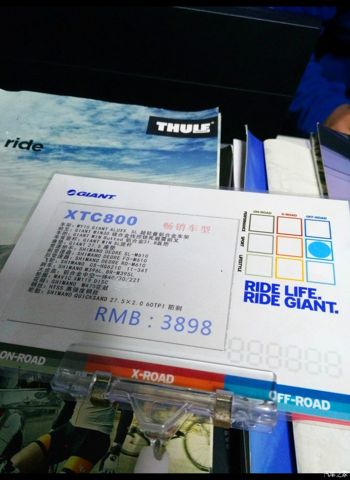 ),美利达属于居中吧,后来看捷安特,刚开始是准备去看ATX777的,据说这个车型的销量是最好的,但车型涂装不是很喜欢,谁让我是外观控呢,于是老板推荐XTC系列,刚好看到800这个黑橙涂装,就像找女朋友一样一见钟情啊,然后老板介绍了一下配置,感觉还能接受,虽然这个价位和传奇700来比根本比不上,一起去的朋友也觉得还可以,于是从第一眼看到到提车付款不到二十分钟。