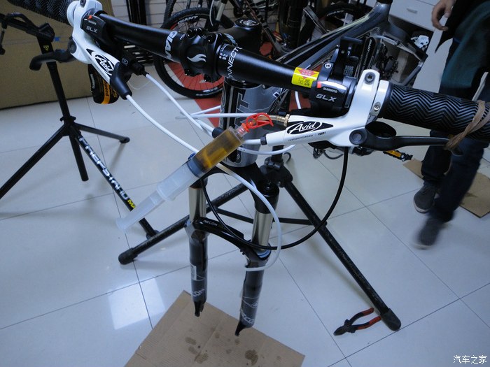 行家们知道这是在做什么吧?旗舰店做事果然靠谱,很负责任。。。。。XTC C3配备的AVID E1的油碟,里面灌装的是DOT4刹车油,为了保证刹车可靠工作,先进行换油。