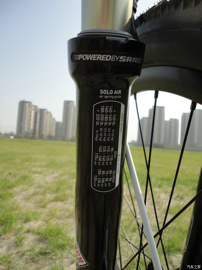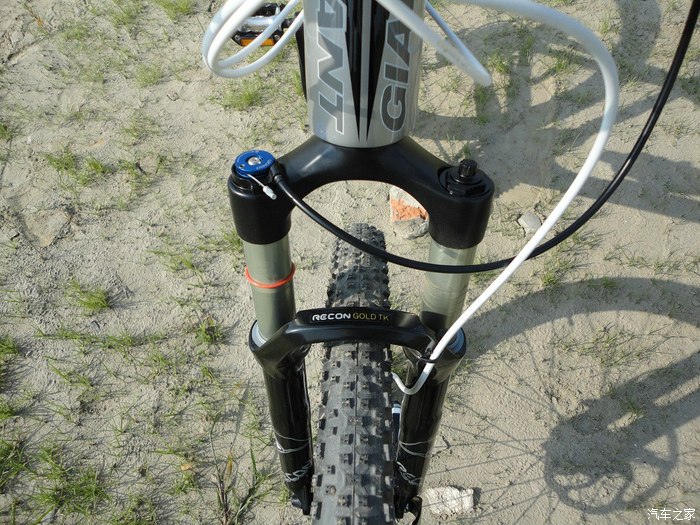 ROCK SHOX的RECON气叉,100MM行程,很粗壮,看着就让人心里踏实,减震效果自不必说,没用过更好的,觉得这个已经很润,没有小7的油簧叉那种摩擦感。。。。。