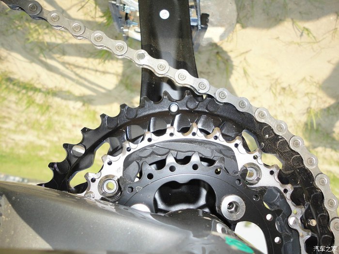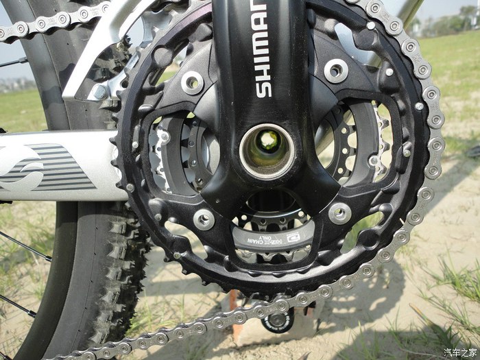 中空牙盘,什么型号的记不得了,DEORE系列,强度不错,蛮好发力的,猛踩一脚手上再带点劲,车头能起来。。。。。