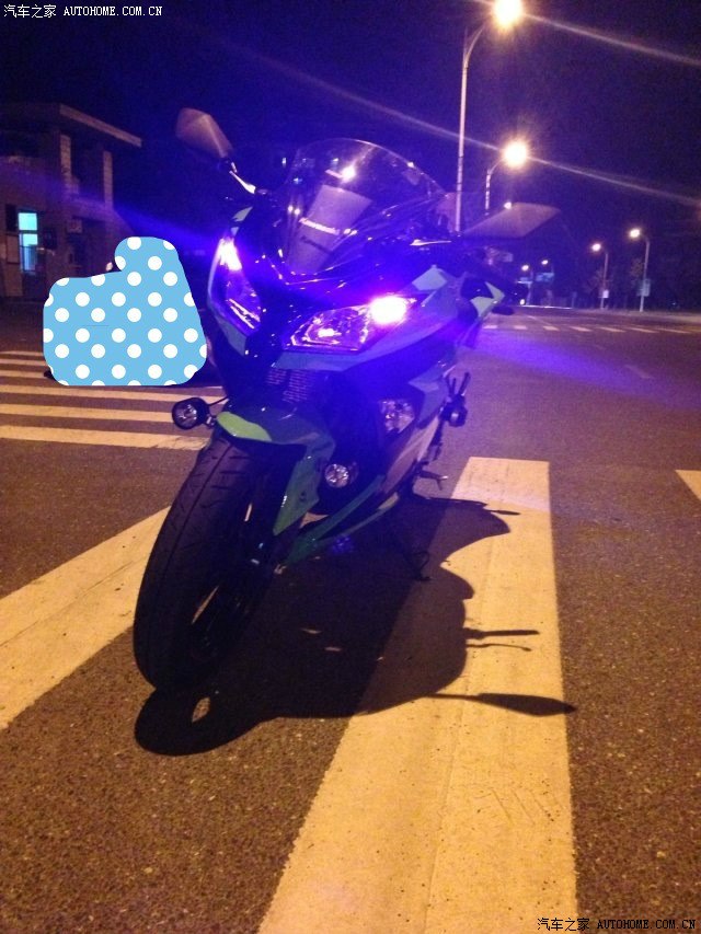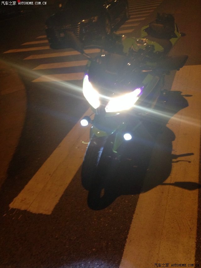 这个是装夜间行车灯的场景啦 不知道摩友们有没有感觉到 在城区里 小忍者的远光灯还是比较管用 但是到了郊外 或者光线比较暗的地方 穿透力不够 所以买了两个大灯 把线切到了远光灯里 这样晚上行车就安全多了 希望夜行 跑长途的不妨装两个喔 也不影响美观 虽然我刚开始还笑闺蜜装上去很土 我错了~~