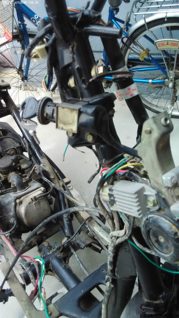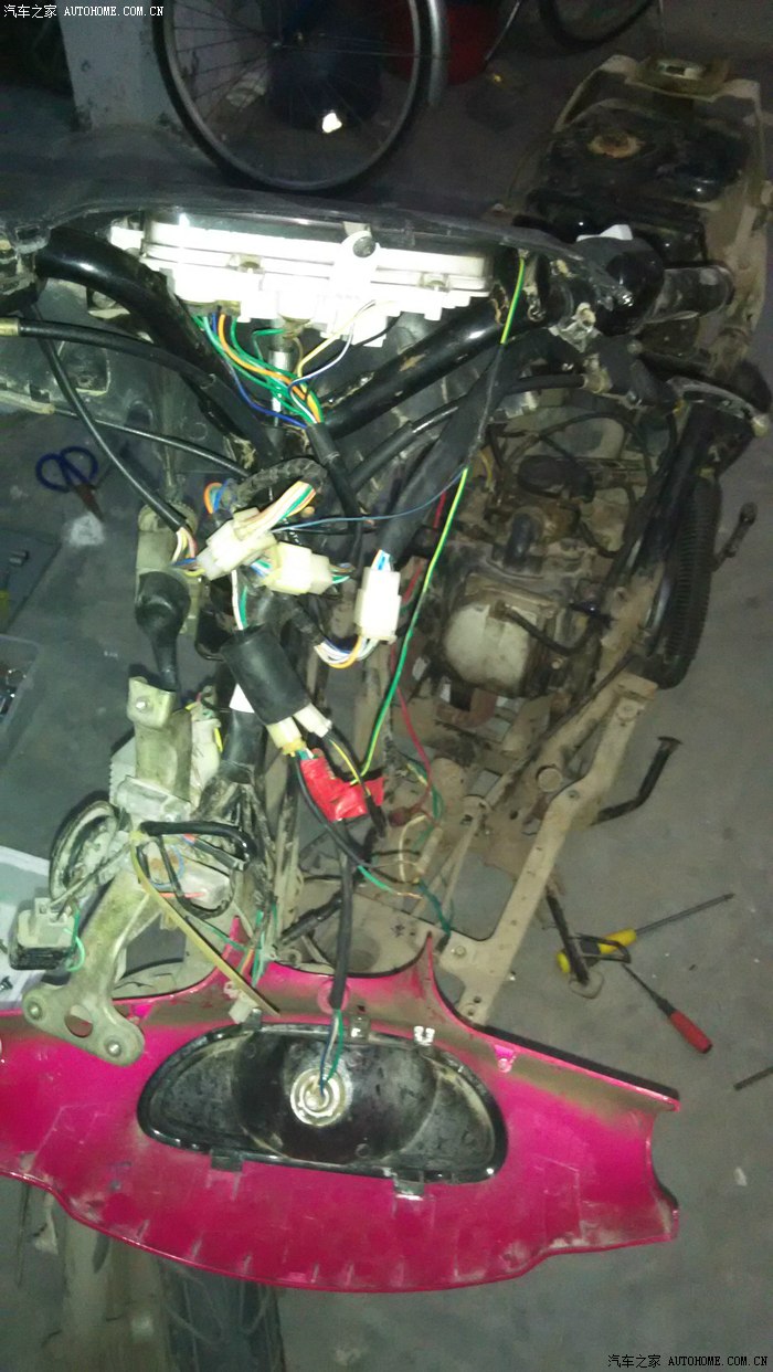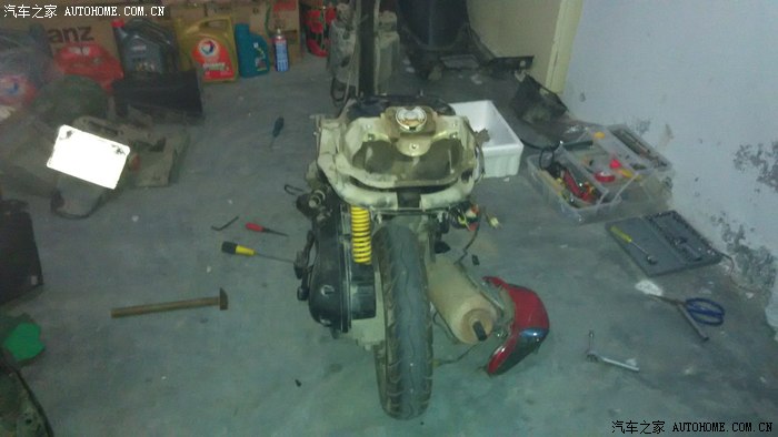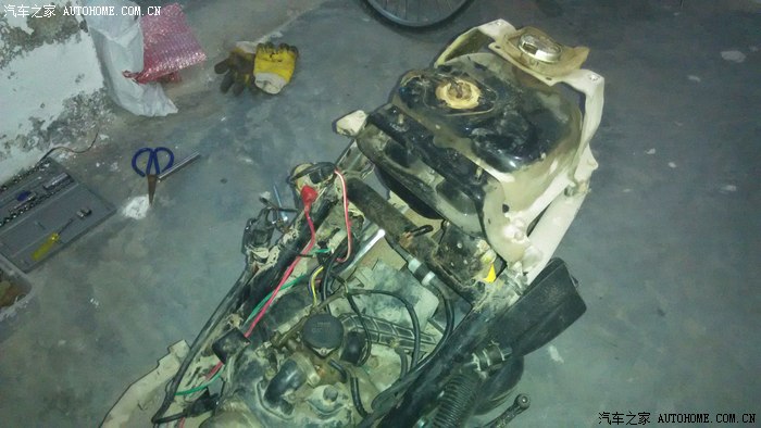 前段时间正巧看见之家摩坛淄博的车友翻新自己的常光豪迈佳人50,外观和我的车型完全一样,翻新后直接焕发第二春,才知道现在这款四冲50有非常多的厂家在模仿,基本成为四冲50的经典款式了,像轻骑灵动、林海小王子、大阳跑跑还有其他很多山寨小厂的产品,而且配件不再像原来那么难找了,正好这段时间由于身体原因没法参与其他活动,就动了自己翻新小车的念头,先是在网上各大摩托车论坛恶补维修知识,分析判断车的故障,然后就是看各种合适车型配件的情况,中间好几次都因为感觉太复杂想放弃实施,前前后后也有2个多月的时间,最后决定挑战一下自己,开始准备工具,配件先从电路、油路着手,这个用替换法比较容易判断故障点,发动机里面就没有办法了,只能去修车铺找师傅咨询,当然一些不太明白的故障就让他直接修了,要不光说不干的事谁也不干不是。