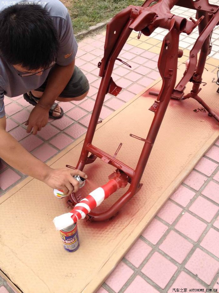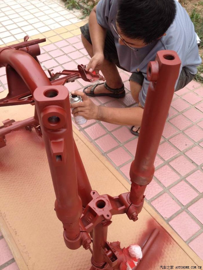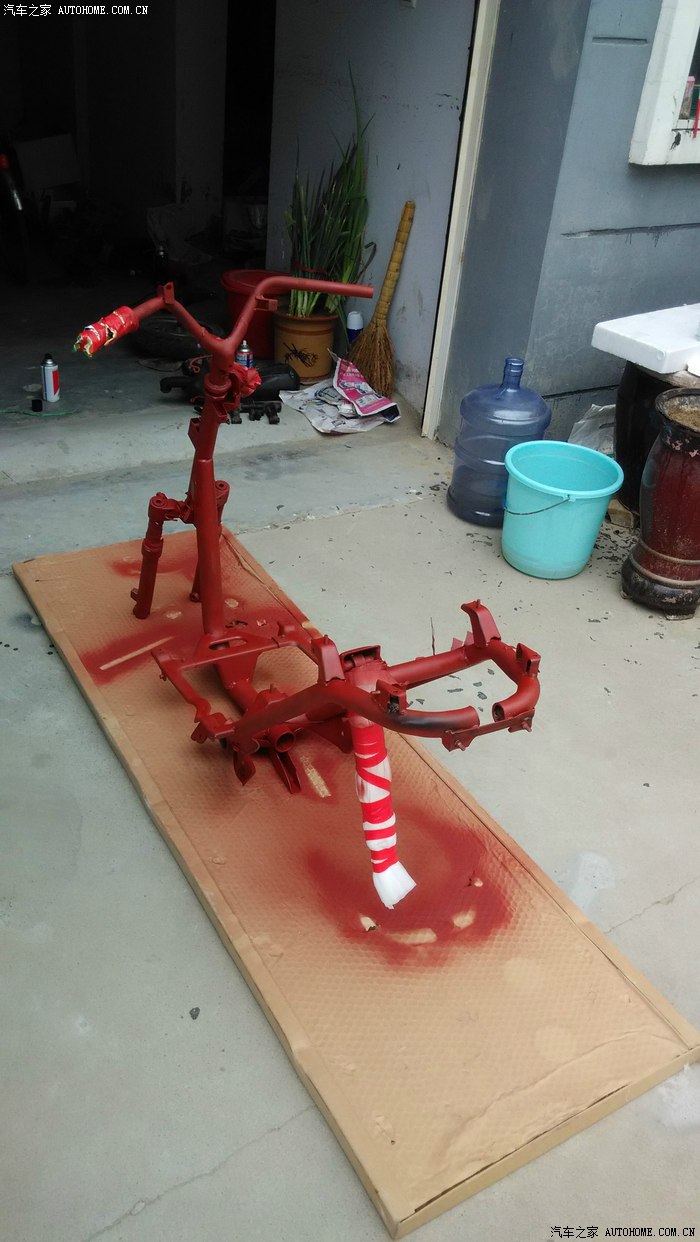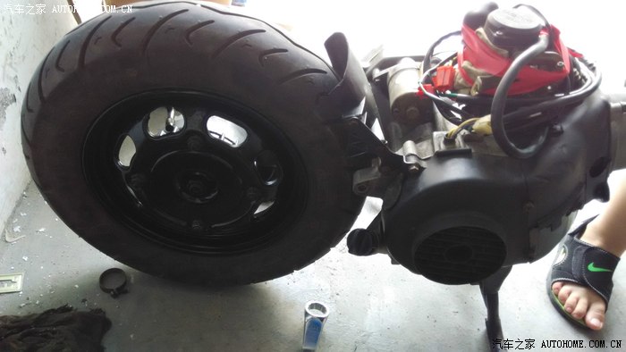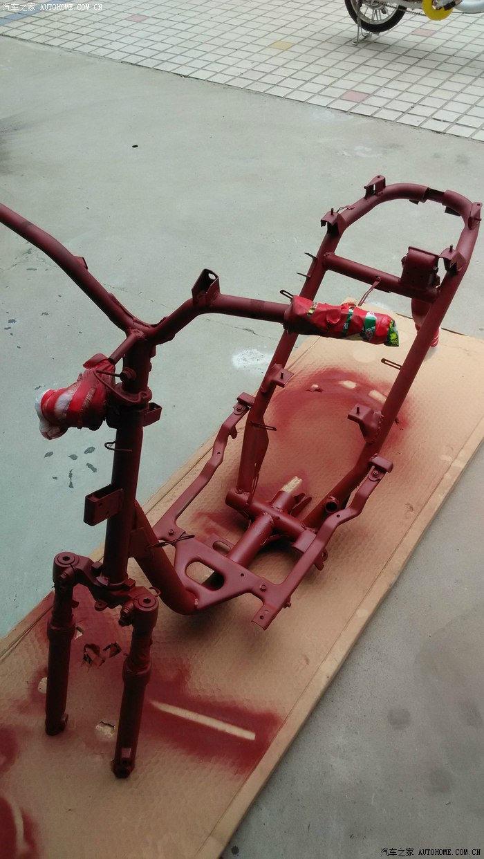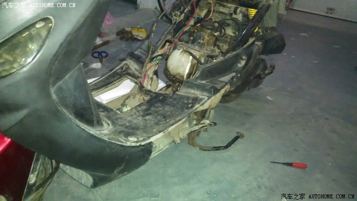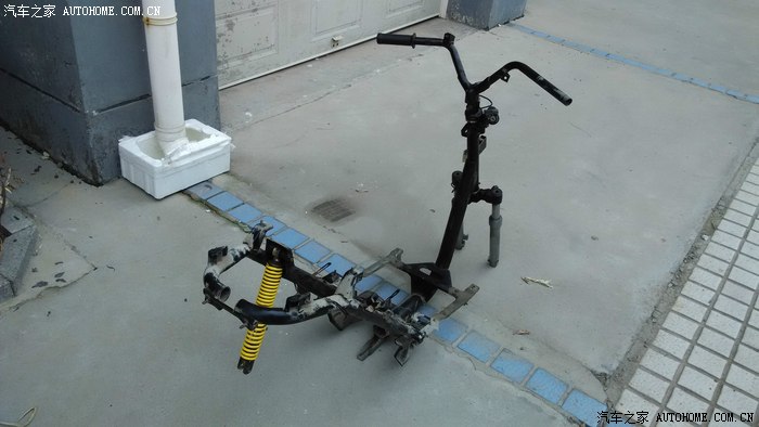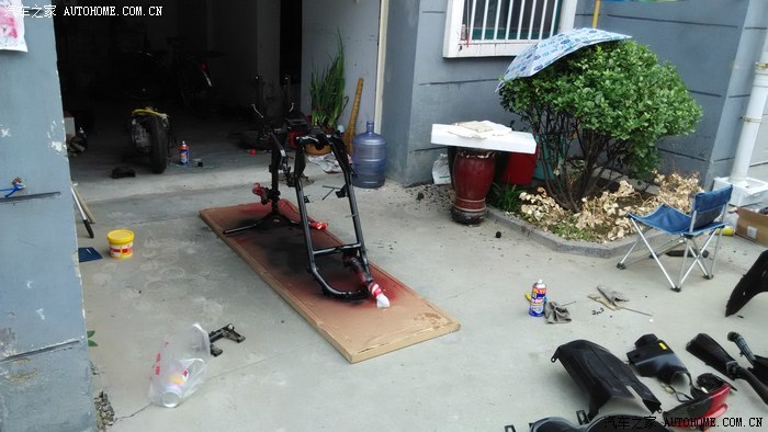 第五天开始装车,网购的副厂外壳到了、光阳原厂组合开关、后减震衬套、后视镜都先后到货了,大线、发动机装车,自己焊的发动机吊架安上试试还可以,脊梁骨挺起来了,后轮离地了