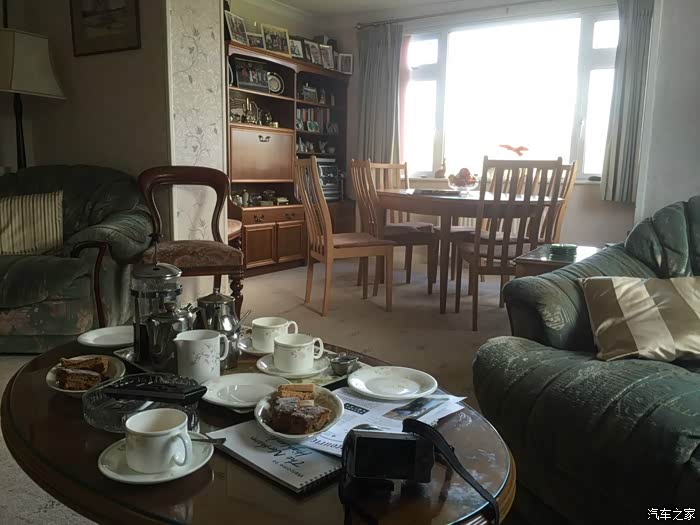 客厅里坐着一位上了岁数很有气质的女士,正端着咖啡在看报纸。看到我来了之后她把眼镜摘下,“你好啊,过来坐,这里有咖啡、茶和小点心,你随意。”