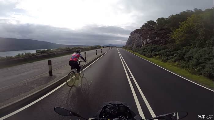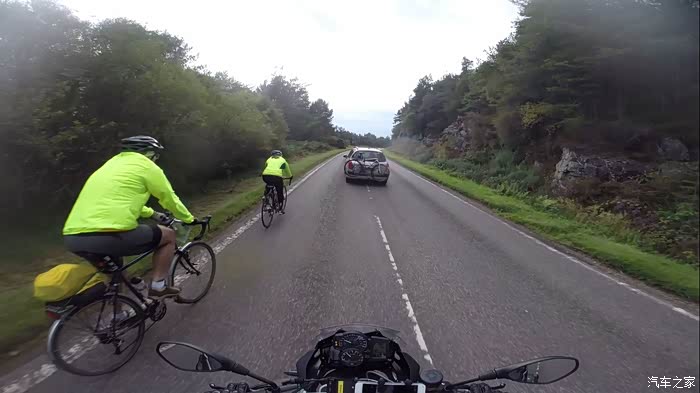 途中除了擦肩而过的汽车外,遇到不少自行车骑手,感觉全苏格兰人一半在路边踢足球,一半在撅着屁股蹬自行车。机动车普遍对自行车报以礼让,极少按喇叭催促,各行其道其乐融融。