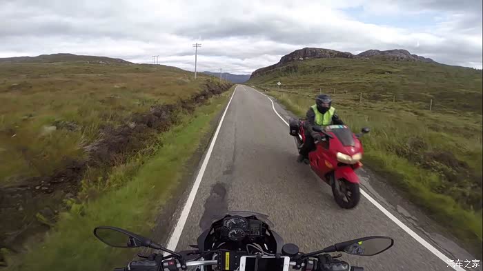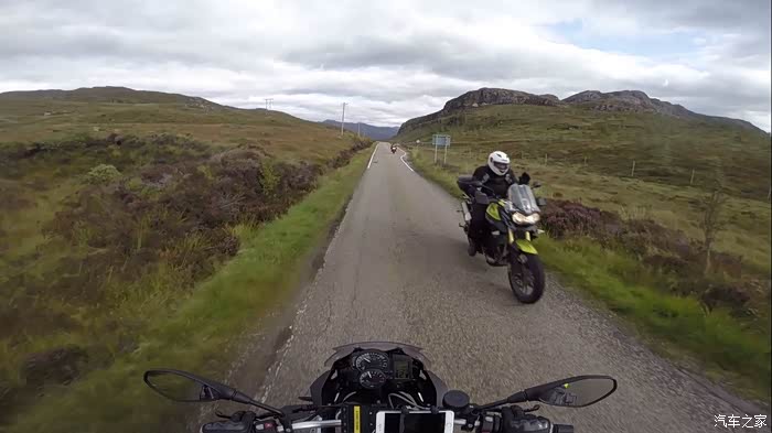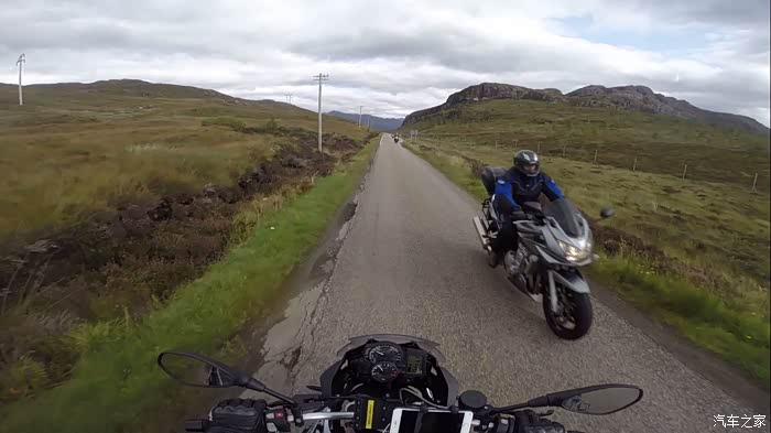 渐渐驶离高地,路上的车多了起来,山路狭窄多弯,估计最前面有辆慢车,所有司机都默契地不声不响慢慢排成了车队,驴爷也就耐心地跟在后面晃荡。忽然山谷里由远及近响彻起轰鸣声,一台敞篷宝马快速逼近,插缝、借道、逆行,嗖的在弯道超过车队扬长而去。哎呦一种亲切感油然而生,这情形驴爷在国内可见多了,没想到堂堂资本主义国家苏格兰也这样啊。还没回过神儿,一台大隼咆哮而过,后座带着个翘屁股大妞儿,瞬间消失在弯道尽头。驴爷在国内浸淫多年的流氓气息瞬间激发,一拧油门从车队中闪出追了上去。
