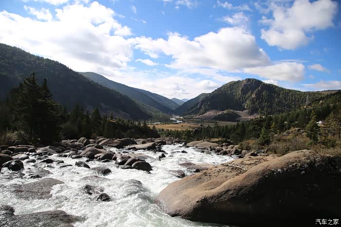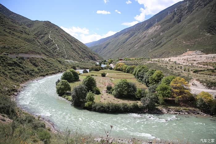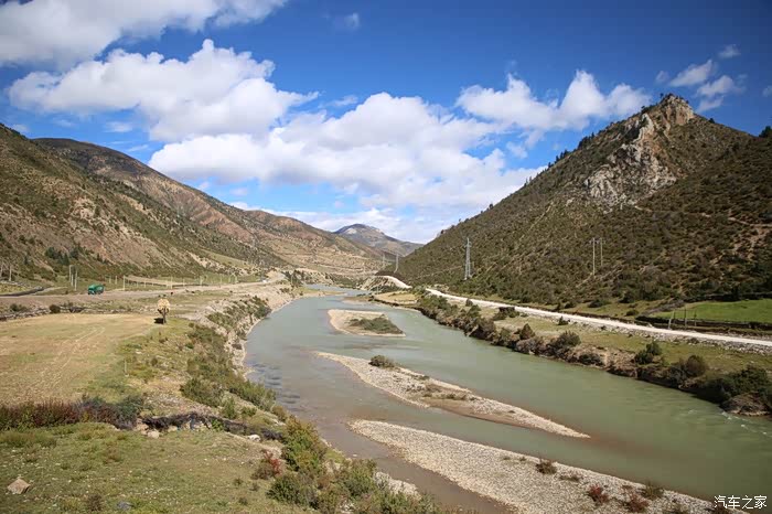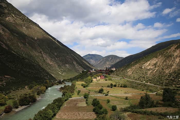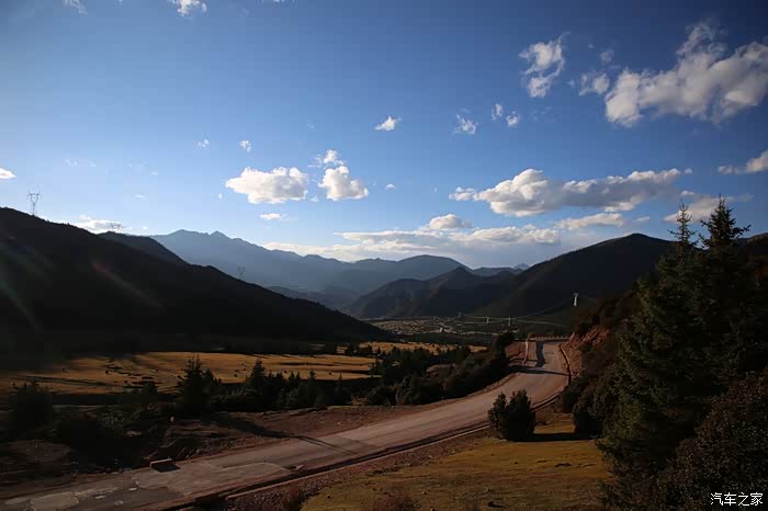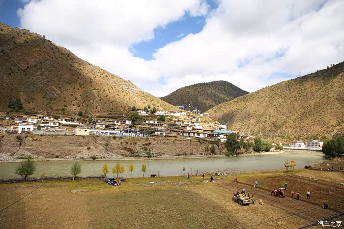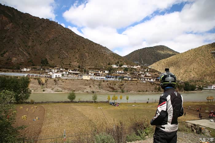前方不远处是巴塘县的竹巴龙乡,简易的安检后当地村民赠送了壶热水,这边的便民服务设施弄的比较好,生活气息比较浓,乡镇的建筑和道路和内地区别已经不大了,唯一差别就是道路两旁的路景,这个季节当地生产梨,入藏这么久还没怎么吃水果,看来需要补充下了,当地的人还不停的问我你们穿成这样不热吗?这边温度还算比较高的,很多人都在穿短袖,他的东西两侧就不一样了,基本都在下雪气温很低。