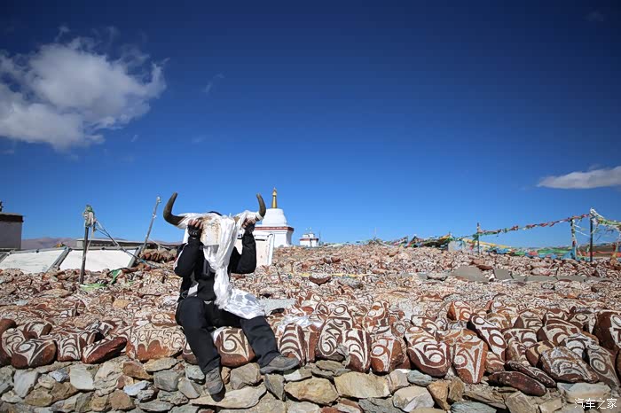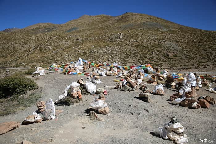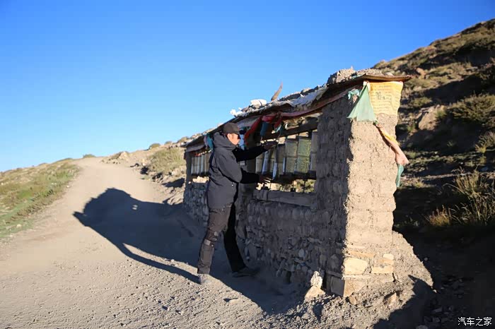 路上看到最多的就是尼玛堆,尼玛应该是太阳的意思,尼玛堆的意思不是太阳堆,而是一种祭坛在配合经幡,祭司活动就是顺时针绕外加转经筒,早晨看到跪行的藏民到目前这个位置已经不多了,他们一般转到一个地方然后把行头一脱在用砖头压住防止风吹跑了,然后就休息去了,转天继续从这里在转,经常性会看到不远处有一些暖水壶,里面都是藏民免费给灌的水,自己喝热水是要收费的,而且不便宜,5快钱以上。