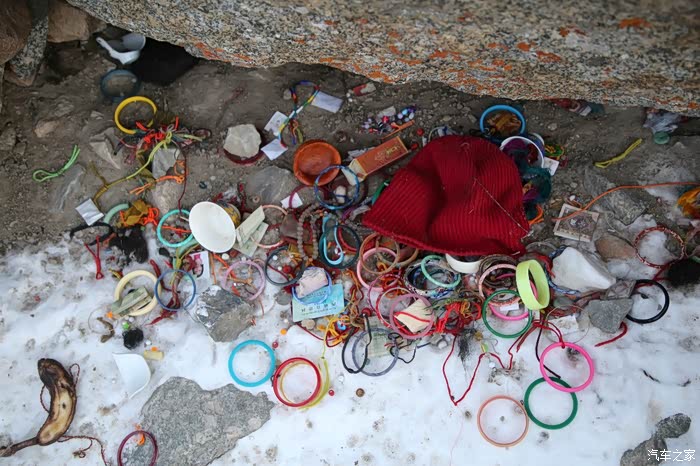 因为没有带手套,其实也不是不想戴,而是出来的时候急,没意识到,所以快到垭口的时候手基本上要冻成冰棍了,这时候我还带和三脚架,手也不能插口袋里,真悲剧啊,路上会经过很多神石,之所以叫神石,是因为很多人来在这里祭拜,大部分都是外国人,石头上贴着自己和家人的照片,地上扔的是一些手镯戒指什么的,为什么要这么干就不得而知了,总之到处可以看到这样的场景。