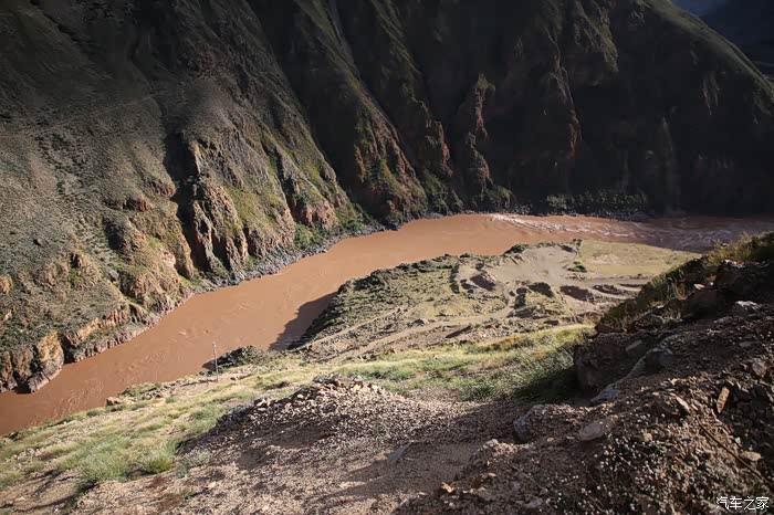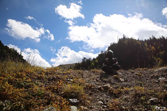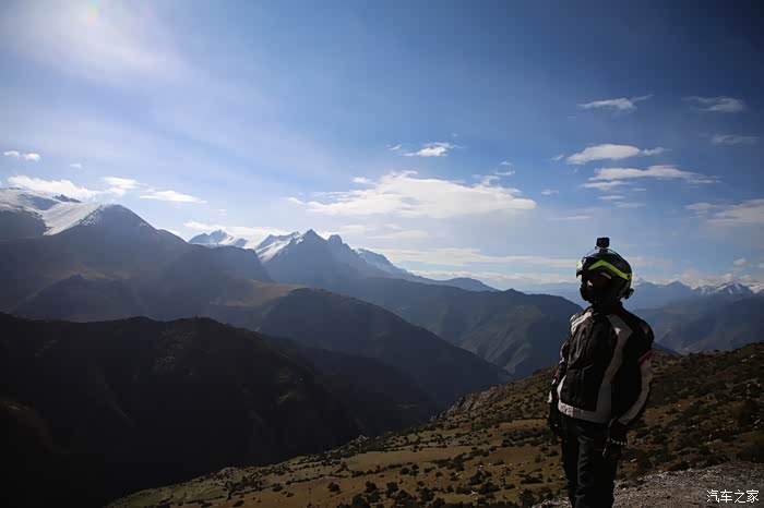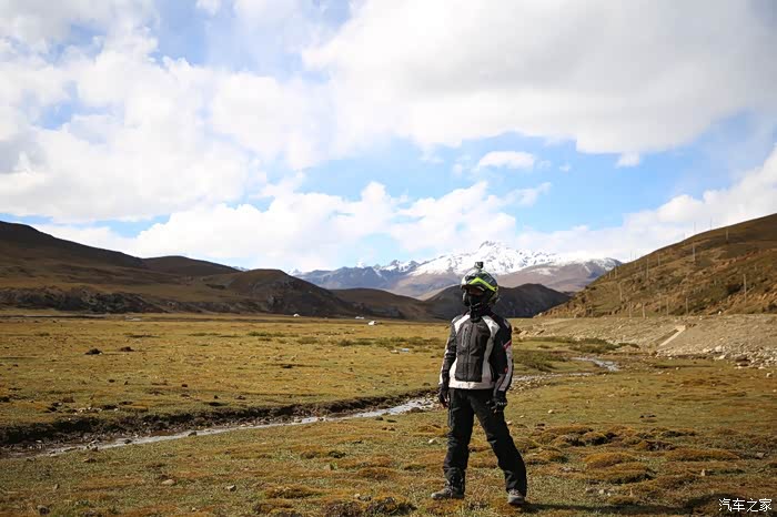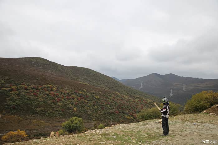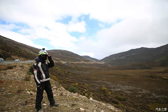 山下面是草原区域,车辆不是很多,视野比较开阔,这样索性我就下车拍拍照,没想到2公里外突然出现三个藏族小孩子,穿的破破烂烂挥舞着手中不知道什么东西向我边喊你好边飞奔过来,他们真是跨越千山万水路上不少小水沟也被他们轻松踏过且速度极快,此时我意识到肯定是要钱要吃的,我现在自己都吃不饱哪里给他们,正当我转头要走,结果被他们追上了,见面后全是各种问好,看相貌感觉岁数也就8到10岁,没办法从箱子里掏出在新疆加油站领一块剩月饼给了他们,最后灰溜溜的走了。