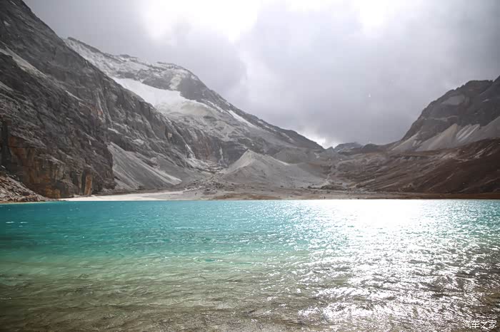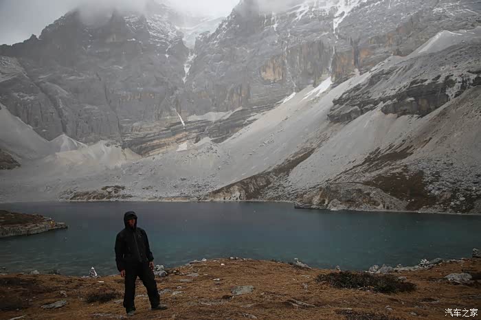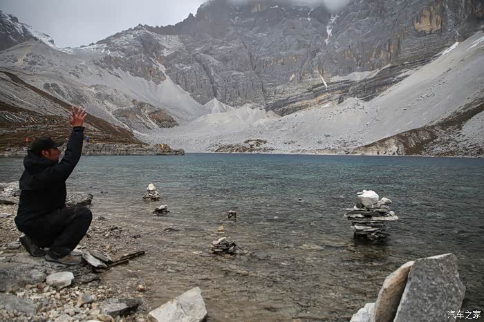 没多久就爬到了山顶,继续向上是五色海,海拔4500米,沿着路直行是牛奶海,海拔4300米,果断选择向上爬,因为下雪和乌云密布五色海和牛奶海真的不咋样,来这么远一趟就看到这景色心理特别失望,湖边都是游客搭的尼玛堆,马帮只能到牛奶海,五色海有木制栈道可以走,修的还不错,三脚架这时候也冻上了,这次依然很失算,和去冈仁波齐一样也没带手套。