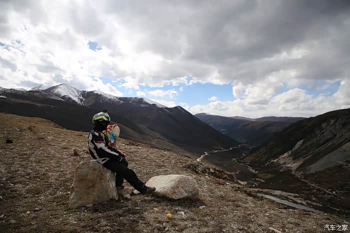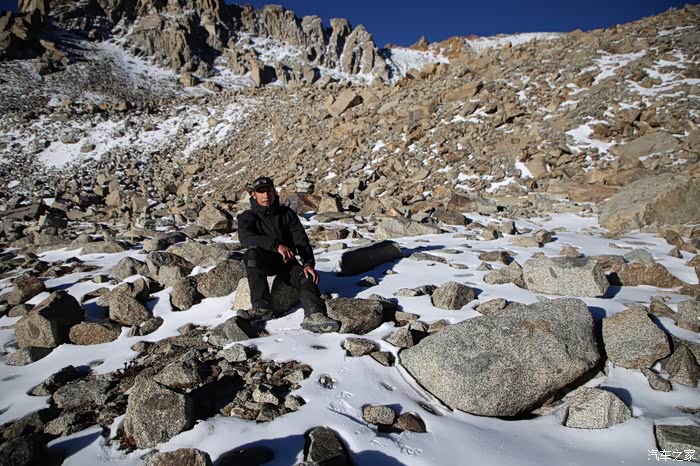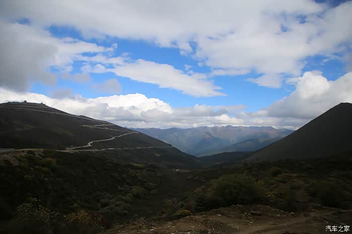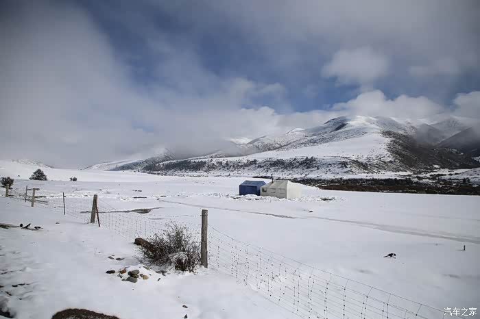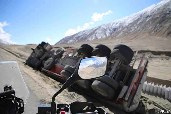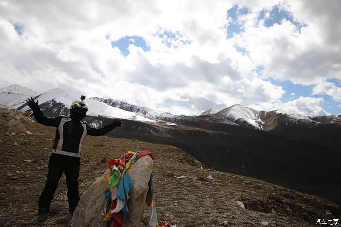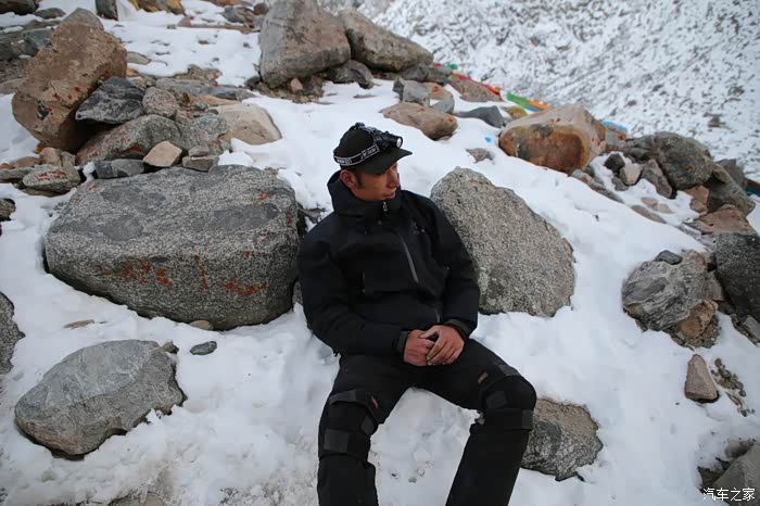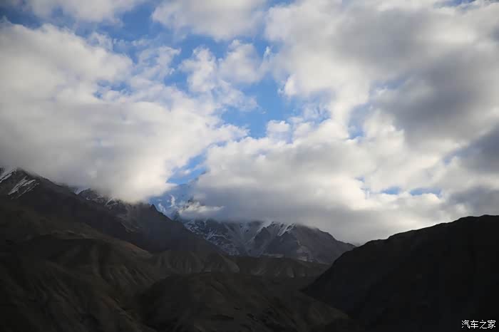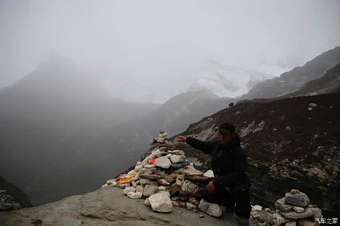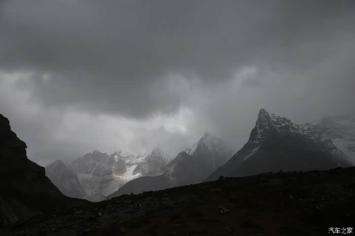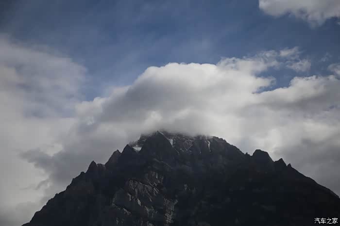 还好命运女神眷顾,翻过了第一个5000米的达坂,这个达坂虽然不是最高的,后面还有界山达坂,红土达坂等等,但是这个达坂确实最危险的,前几天挂掉的宝马车主就是折在这里了,这个达坂几乎都在下雪,一路上不少正穿的四轮车主都说奇台达坂下雪可大了,一定要小心,这次来了,虽然有雪,但是慢慢走就可以了,只要从奇台达坂下来乌云立马就开始散了,晴空万里谈不上,但是不下雪了。