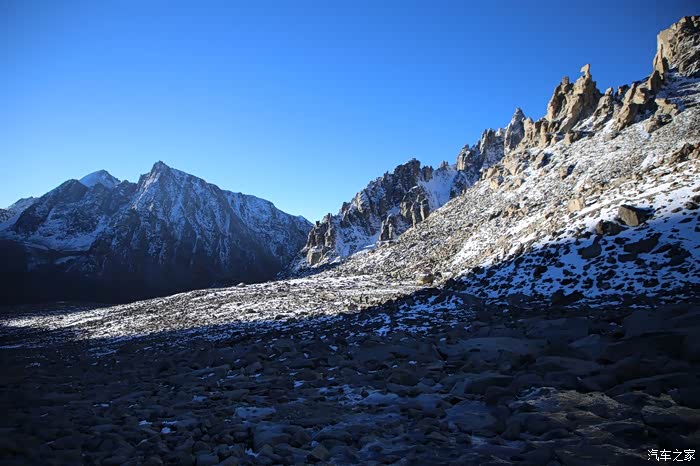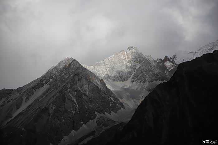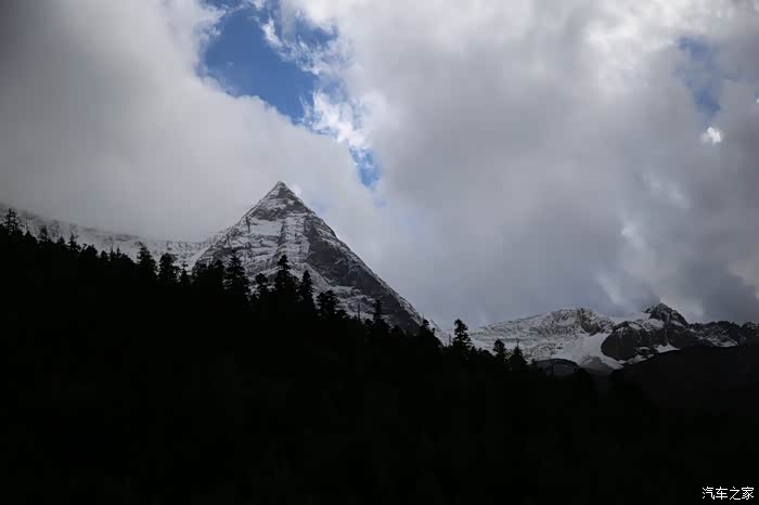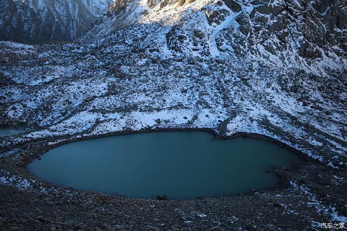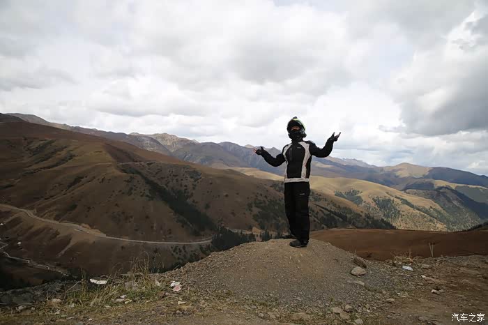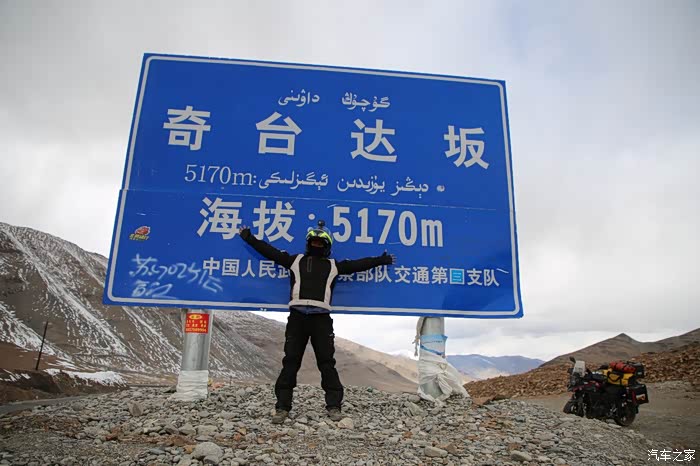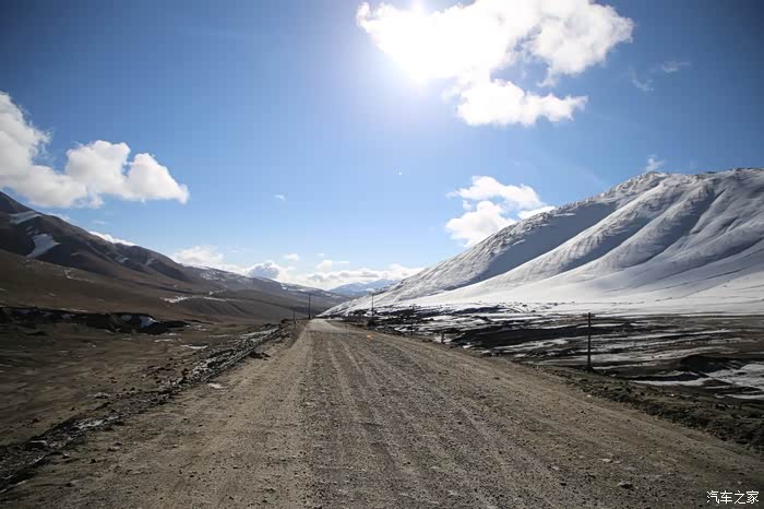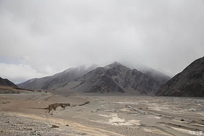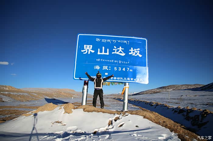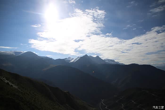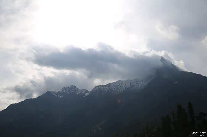 还好命运女神眷顾,翻过了第一个5000米的达坂,这个达坂虽然不是最高的,后面还有界山达坂,红土达坂等等,但是这个达坂确实最危险的,前几天挂掉的宝马车主就是折在这里了,这个达坂几乎都在下雪,一路上不少正穿的四轮车主都说奇台达坂下雪可大了,一定要小心,这次来了,虽然有雪,但是慢慢走就可以了,只要从奇台达坂下来乌云立马就开始散了,晴空万里谈不上,但是不下雪了。