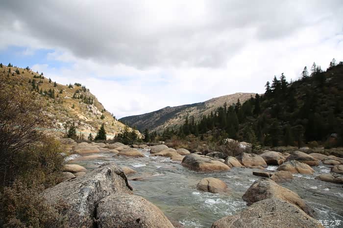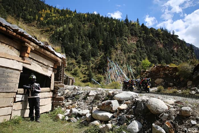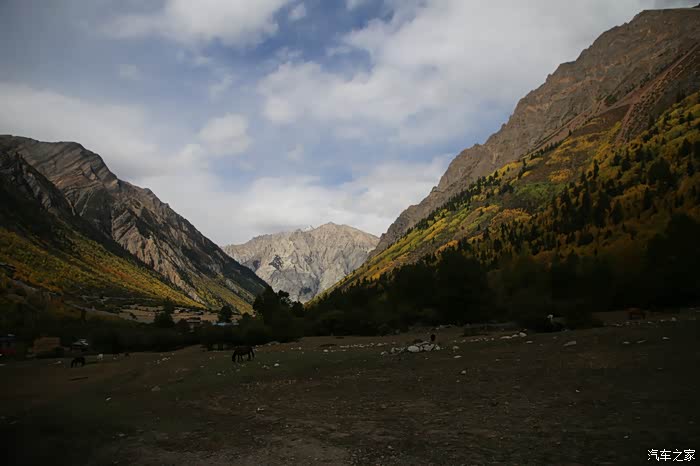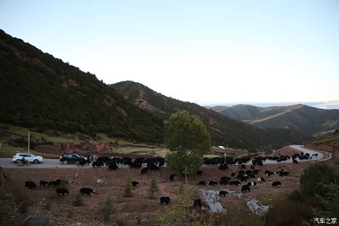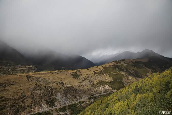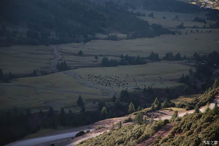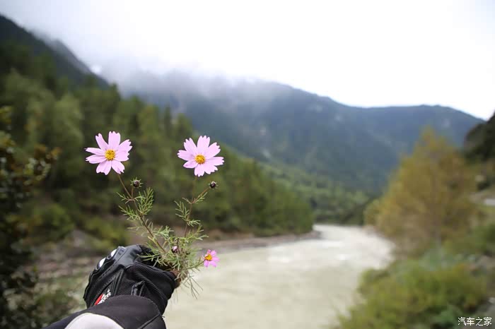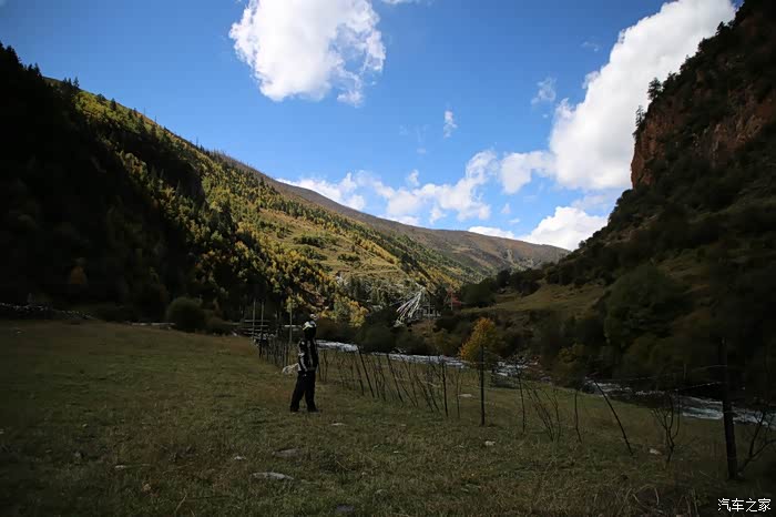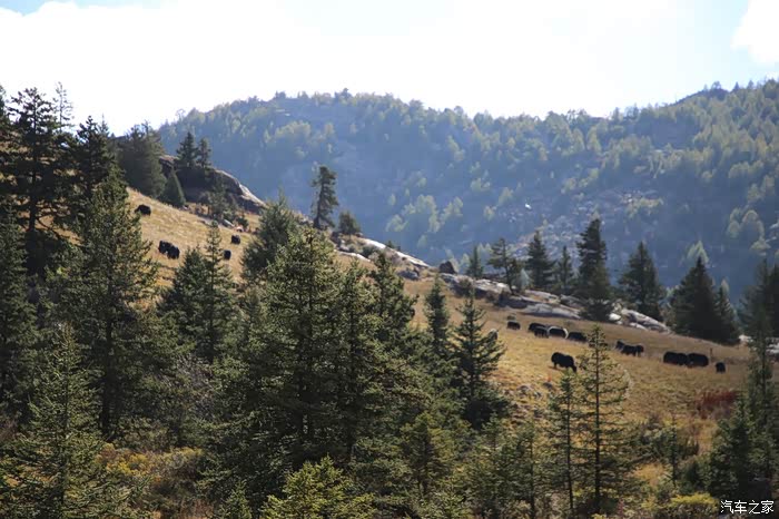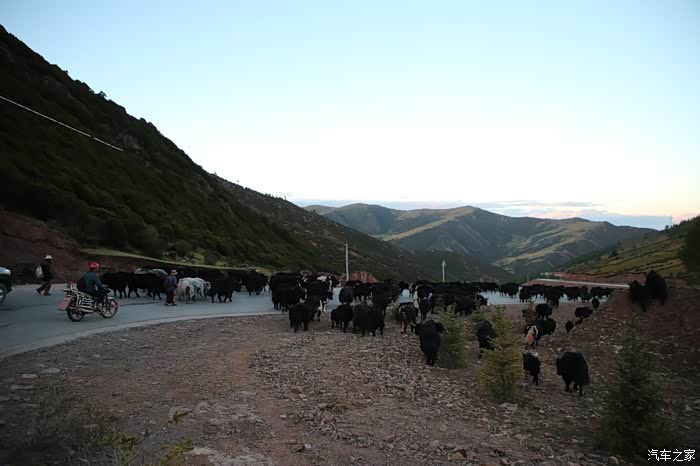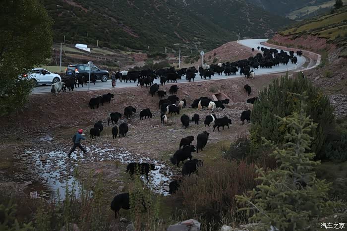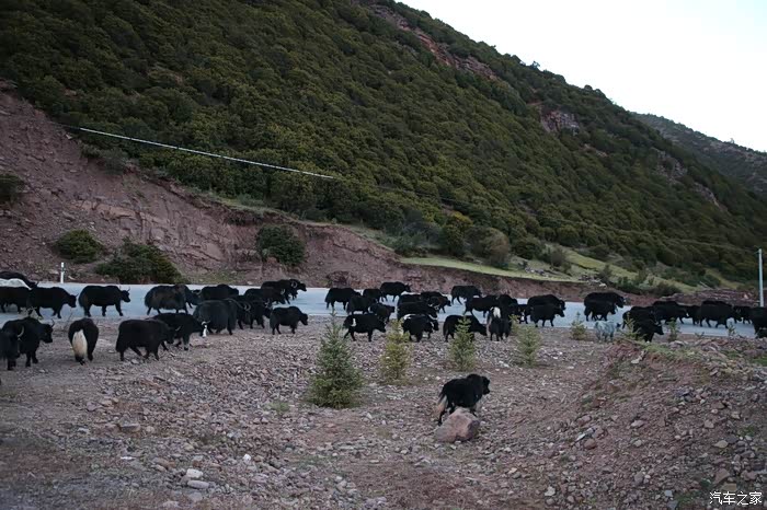 只有天稍微晴朗的时候可以拍拍照,大部分情况下相机都是怪怪的躺在包里,中途有个高原牧场挺不错的,随处可以看到散养的牦牛,主人是看不到的,他们在很远的前方帐篷区,要是开个皮卡拉走一只估计主人也不知道,这条线路属于318和317之间的连接线,游客不是很多,整体感觉比较宁静,尤其是越往317方向人文气息就越浓,有一种室外桃园的感觉,手上戴着手套并且下雨很多景色都没记录下来可惜了。