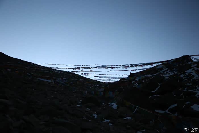 雪是越来越大,气温是越来越低,空气中的水分子几乎都要凝结了,如果是下午翻这里应该会好很多,这边的垭口可以下午翻,不像很多雪山必须要遵守午后原则,也就是中午之后就不能上山了,否则风会很大,危险程度很高,这个山口叫卓玛拉山口,也没有一个牌子,这样导致想合影留念一下都困难,我是可以坚持,我的相机估计也可以坚持,海拔大约有5700米,看到一大片经幡就是这里了。