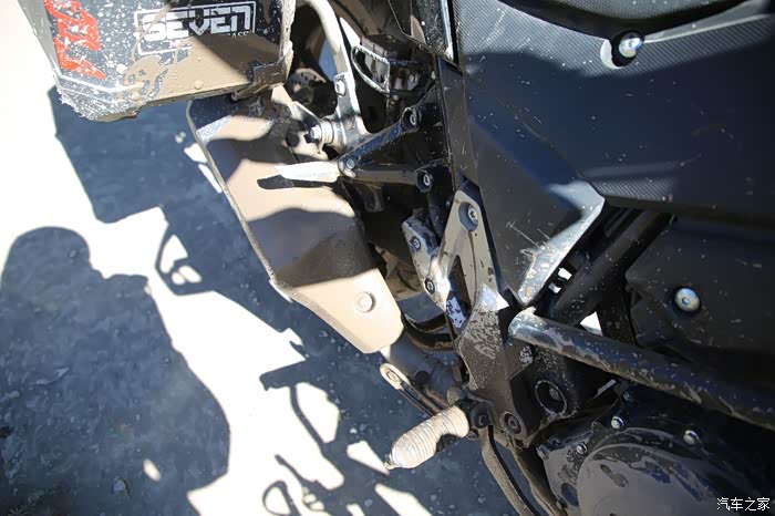 停车检查了一下车辆状况,低头的时候发现,车龙头的大螺丝已经震掉了,应该不是早上摔的,龙头一共有2个螺丝,这回真不好办了,这个螺丝不太好配,首先是长,其次必须要硬和结实,车子随着使用频率的提升很多问题也集中显现出来了,链条有几节有点僵硬,油封里面的油态似乎也不正常,链条茜拉哗啦的每次经过石头墩子的时候表现的特别明显,看来2万公里需要大保养了,轮胎磨损还可以,在叶城看过一个DL3万公里的轮胎状况,目测5万公里胎纹都不会少,只是表面会更光滑而已。