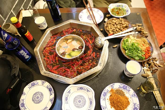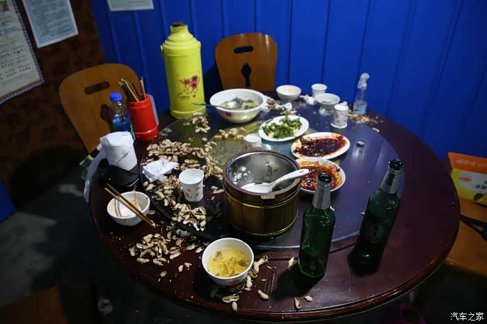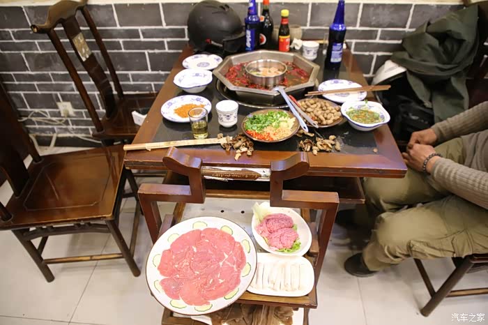 100快钱住了一间很棒的小院子,里面什么都有,车子还可以停进去,老板人很好,这个院子是他私人买下来的,价格据说不贵,此时体内寒气太重,都是路上骑车冻的,洗了一个热水澡后精神焕发,大半夜1点多找地方觅食,最后选的是一家四川黑暗料理,啥东西都是现做,现场给你高压锅弄,从后箱里翻了一下,还有一瓶从北京带来的草原蒙古王,为了驱寒继续干。