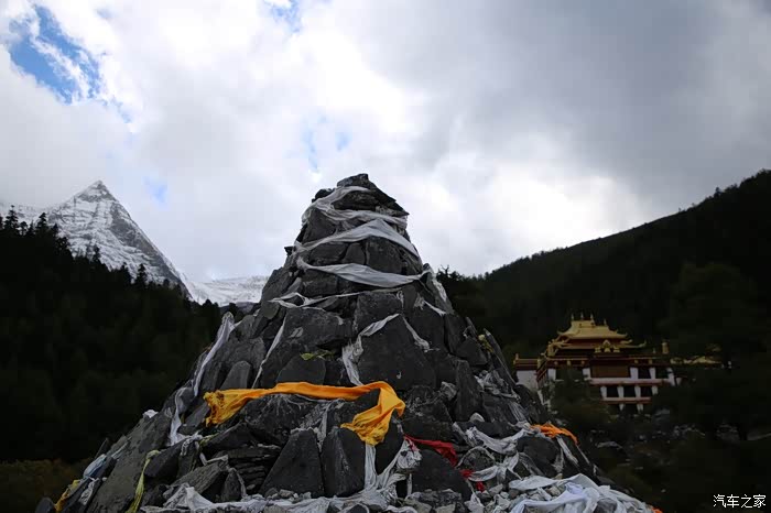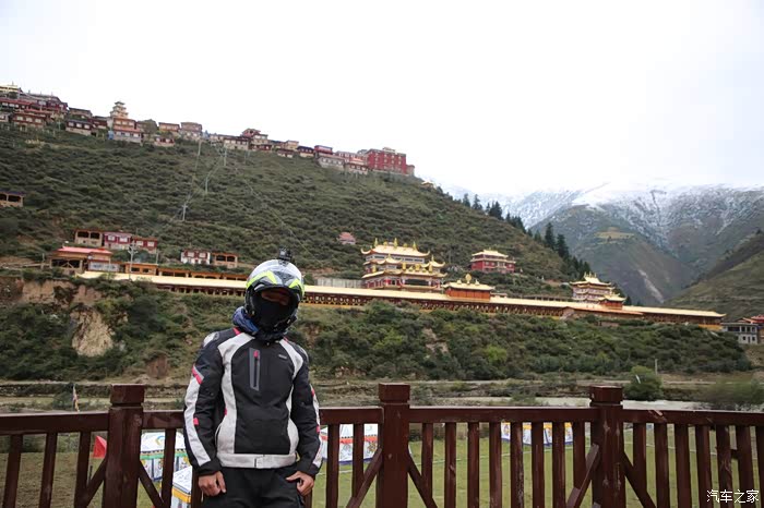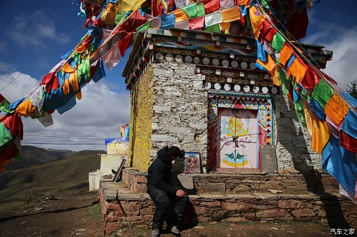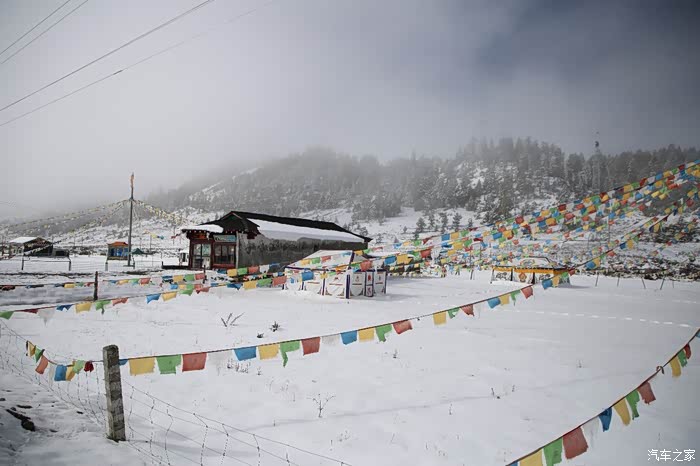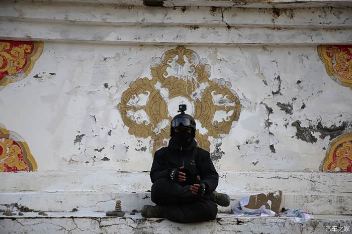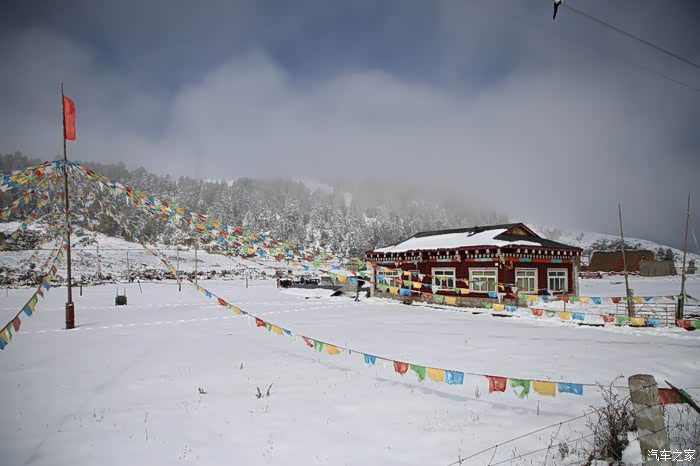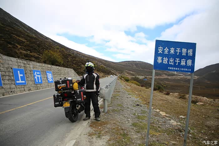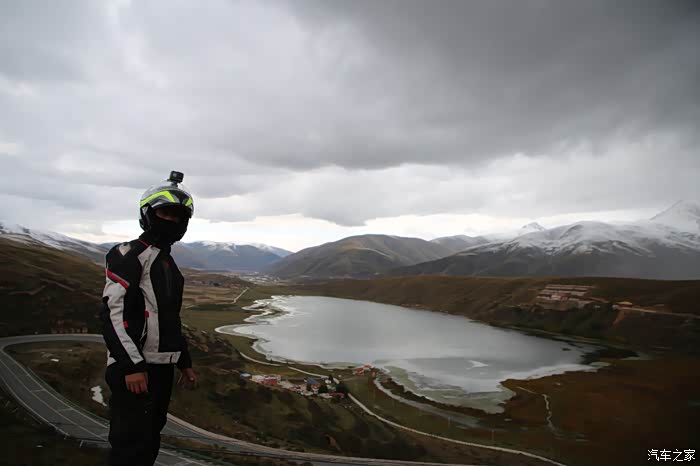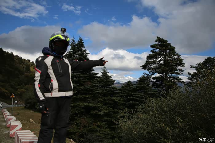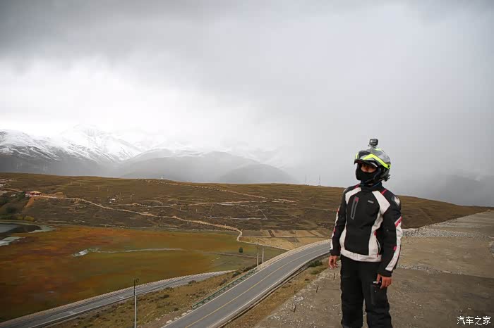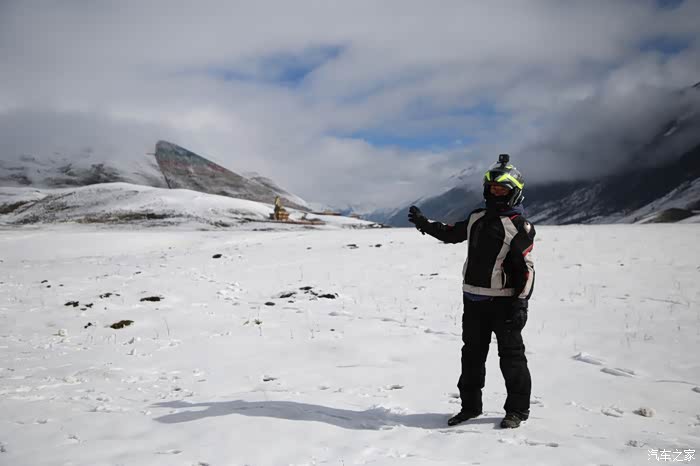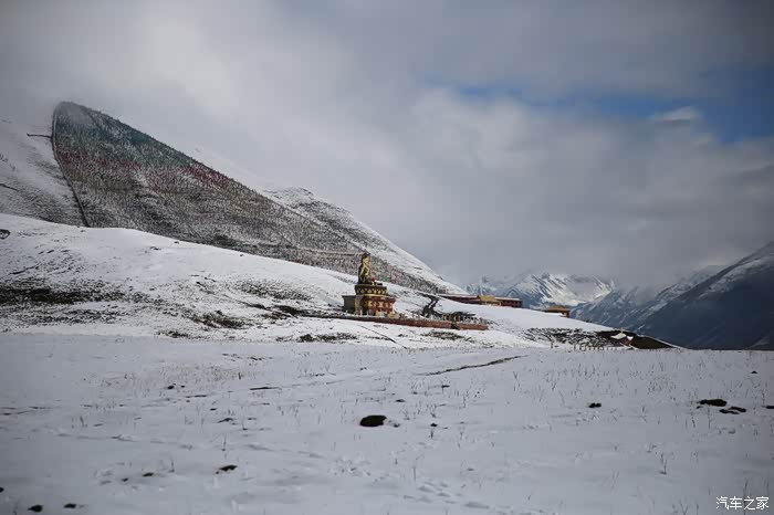 在理塘县的前方是扎嘎神山风景区,海拔大约是4000多米,上面有寺庙,从这里开始天气就变的极其恶劣了,盘山路上竟然下雪了,呼出来的气体瞬间凝结,因为轮胎抓地力不是太好,就是担心车子在这种情况下打滑,也不敢掉以轻心,速度不能太快也不能太慢,山上是看不到要停的态势,骑车状态下还要保护摄影器材,受潮对于相机是一个极大的损坏,因为寒冷问题已经有不少按键错位了,在出问题直接可以崩溃了。