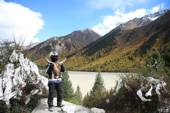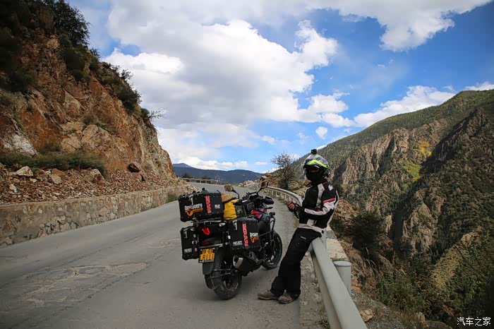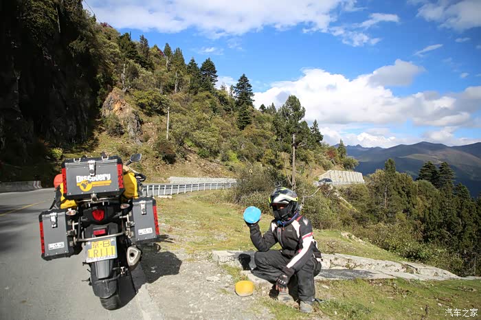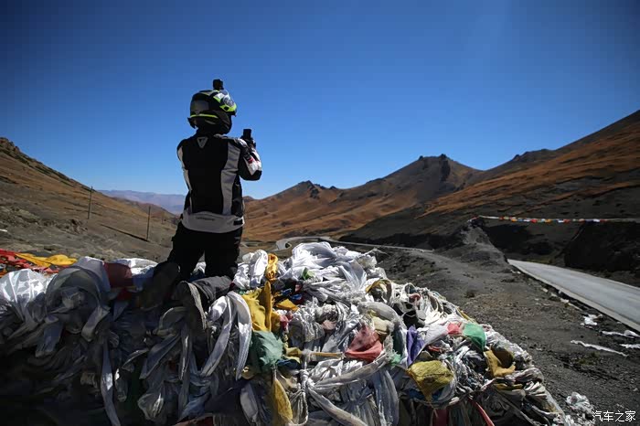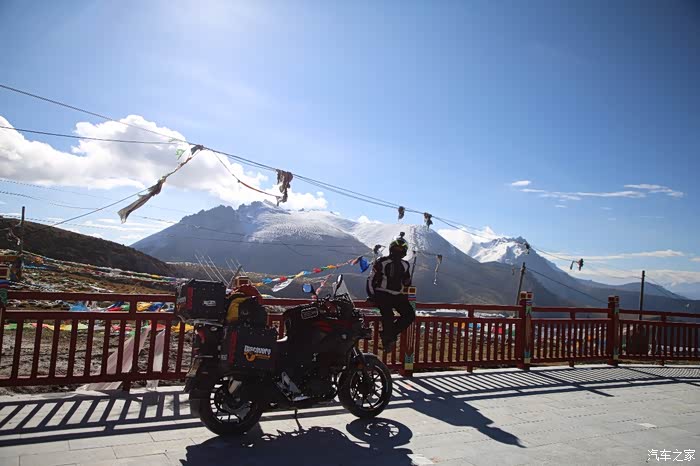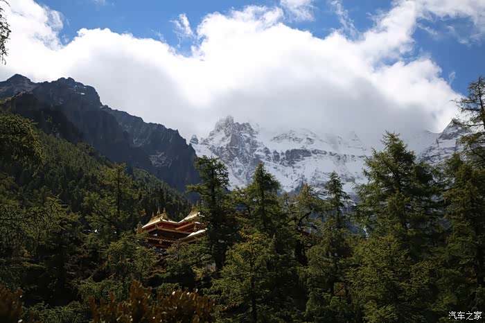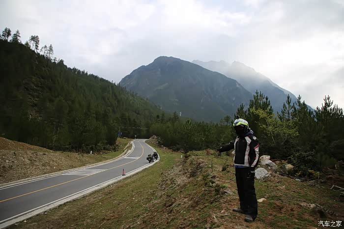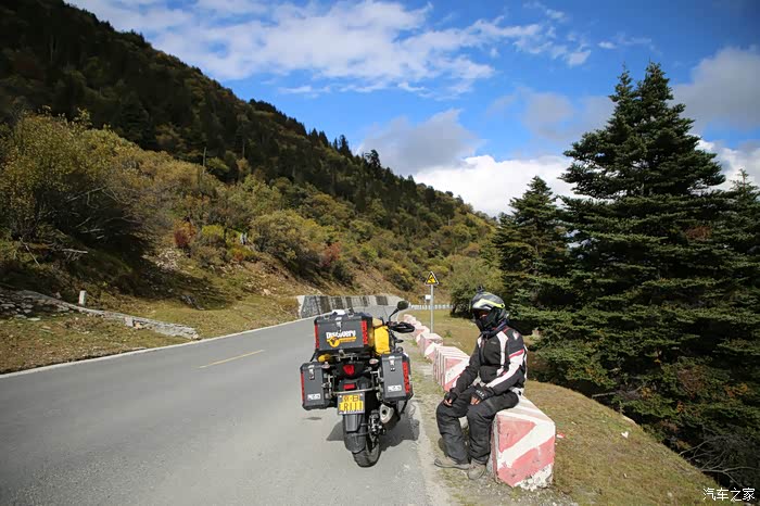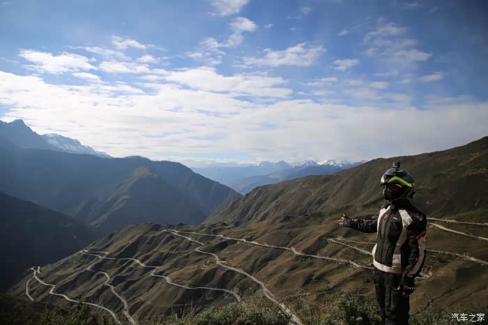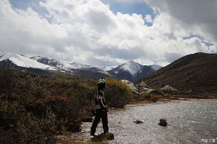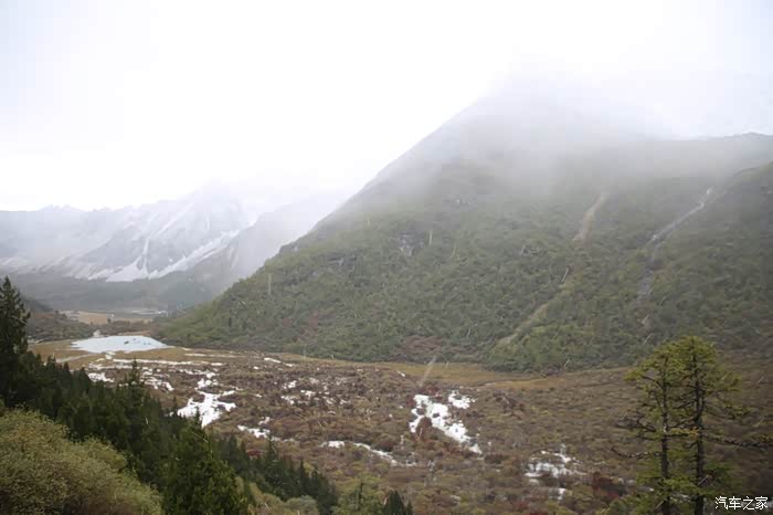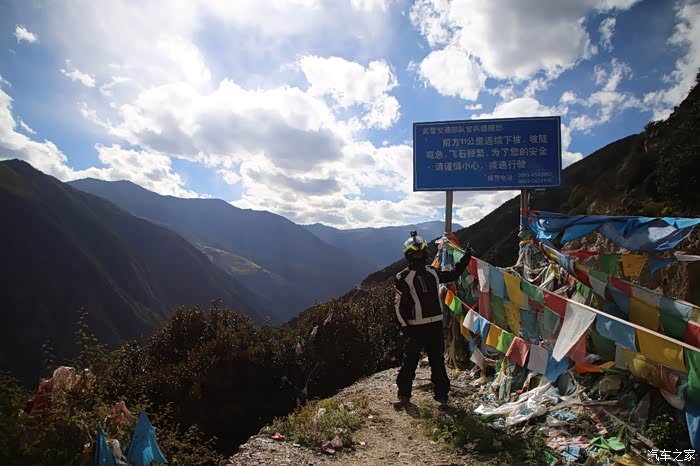 在理塘县的前方是扎嘎神山风景区,海拔大约是4000多米,上面有寺庙,从这里开始天气就变的极其恶劣了,盘山路上竟然下雪了,呼出来的气体瞬间凝结,因为轮胎抓地力不是太好,就是担心车子在这种情况下打滑,也不敢掉以轻心,速度不能太快也不能太慢,山上是看不到要停的态势,骑车状态下还要保护摄影器材,受潮对于相机是一个极大的损坏,因为寒冷问题已经有不少按键错位了,在出问题直接可以崩溃了。