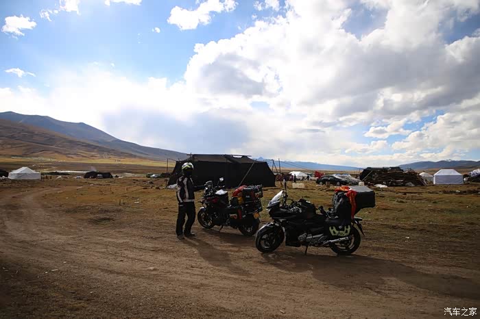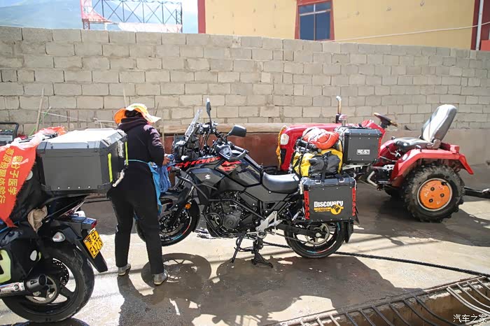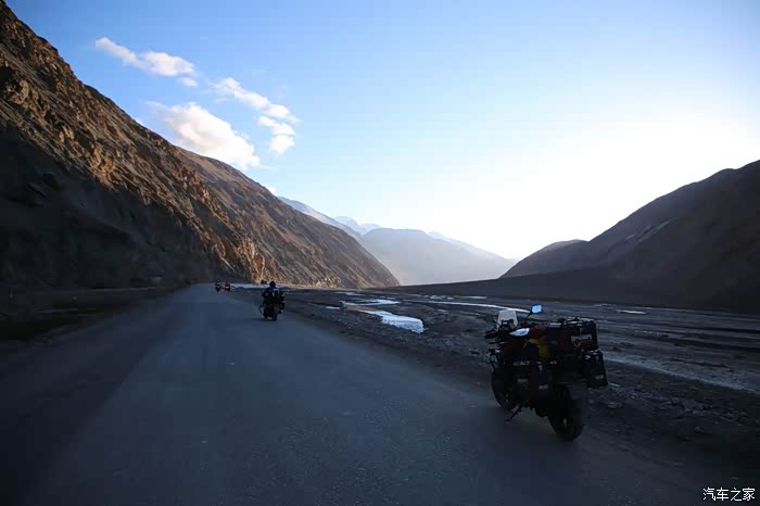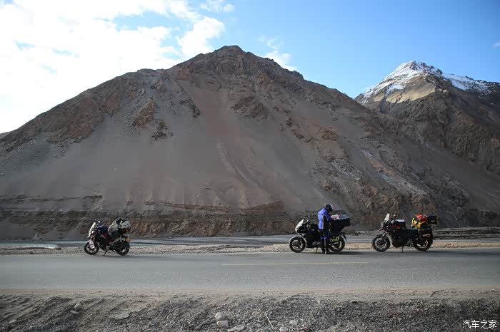 昨天的行程严重受损,本来计划是到大红柳滩,结果在麻扎住了一晚上,同时还出现了一个小插曲,同伴老司机的胳膊摔了,这回是腿也残了,胳膊也残了,不过还在又遇到2位独行侠,他们的意见是今天就到大红柳滩,我是坚决不太认可,我希望到日土,其实挺难的,800公里山路,翻那么多达坂,还都是高原,反正给自己定下的目标是最差到多玛,骑友之家的床位基本上都是满的,早上小车驴友,直接上车顶着寒气早早的就出发了,就剩下我们4个骑友在屋子里面发呆,东西都装上了车子,车子早上基本是冻上的状态,GW比较惨,发动机怠速不太稳,DL还好,高原表现就是平庸至极,但是还不至于出问题,GW连续熄火多次后总算着起来了,暴风眼摩友和150摩友因为觉得自己车子慢,所以就先出发了,其实他们车子在高原外加爬坡的环境和DL与GW没什么区别,速度都差不多。