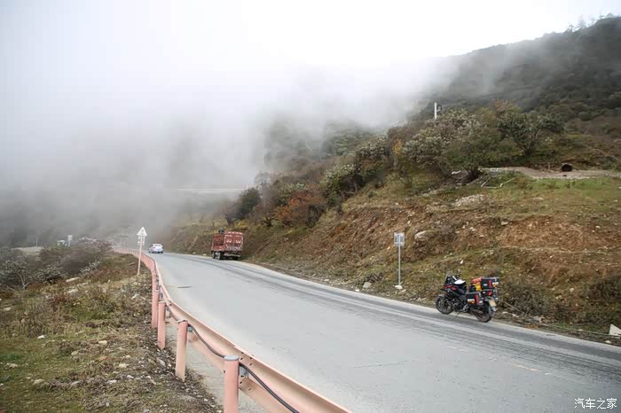 到了四姑娘山继续向前,进入隧道后迷雾环绕,这哪里是能见度5米,简直就是伸手不见五指,呼出来的气体瞬间在头盔上凝结成冰,所有车都特规矩全部打着双闪,也看不到超车的了,速度也就20到30,地面没敢看,也没机会看,肯定是结冰了,转弯也不敢转大弯,生怕被对面来车撞到,20公里的路走了1个多小时,总算是通过了雾区,四姑娘山下来后就是现代文明了,稍微还有点不适应,甘孜西藏新疆都太原生态了也许已经形成了思维和感官惯性了。