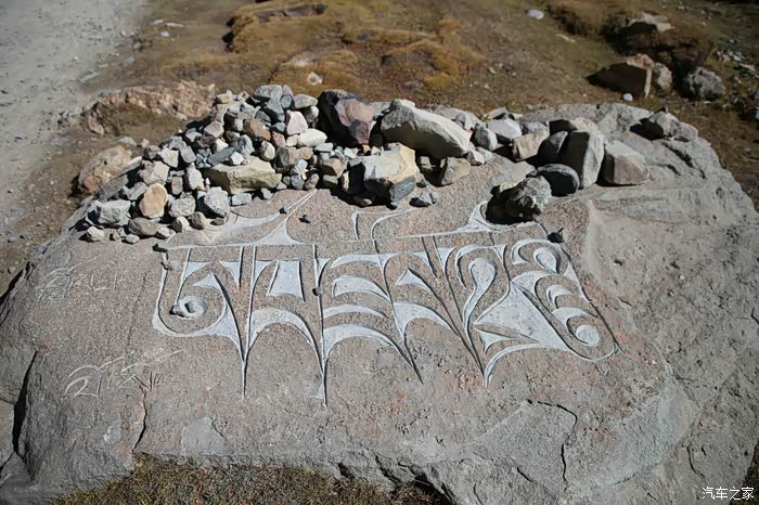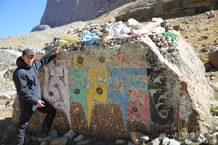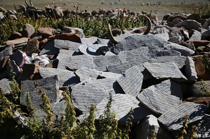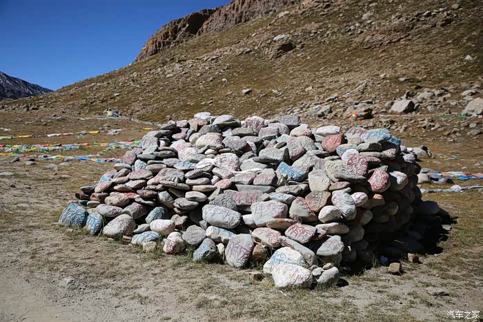 没多久就可以到一个经幡广场了,这个地方可以看到冈仁波齐,底下都是已经雕刻好的石头,上面都写着六字真言(唵(ōng)嘛(ma)呢(nī)叭(bēi)(mēi)吽(hōng)),冈仁波齐的海拔不是很高只有6656米,和我爬过的山差不多高,但是不允许攀登,毕竟这个地方相当神圣,圣山的南面就是所谓的圣湖,游览圣湖的人不多,以前这2个景区是要买大通票的,现在分开了,而且管理很松散,买不买票看个人了。