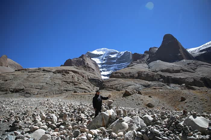 碎石路开始变多,对于徒步的人来说没什么困难,困难的是汽车开始走碎石路了,本身路只能一辆车过,还经常出现会车状况,车卷起的灰尘非常变态,几乎路上的所有人都背过身去,没走多远就到了冈仁波齐第二的观景区,全走下来会发现只有顺时针的这半环才可以看到冈仁波齐,逆时针的半环什么都看不到,中间用卓玛拉山口作为分界线,而卓玛拉山口的海拔大约是在5700米,大部分人都选择第一天翻过卓玛拉山口,而我选择就在止热寺,因为止热寺是观看冈仁波齐最佳的地方,尤其是夜景。