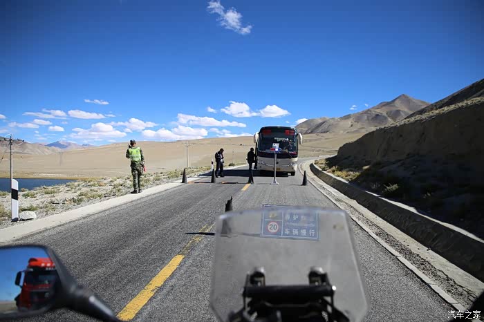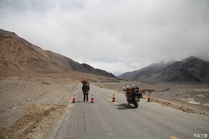 继续前行开始进入兵站,需要安检2次,一个地方竟然设置了2个安检口,安检的人员坐在路中间,穿着荒野求生里面的稻草服,一副即将要打仗的态势,头顶可以看到直升飞机在巡逻,看来这个地方才是真正的边境要塞,后来得知不远处就是阿克赛钦,阿克赛钦这个地方很多人都不熟,其实这里是中印战争的争议地区,也属于克什米尔范围,领土划分一直在搁置,没准哪天中国其他地区问题处理完了就开始回过头研究这里了,同样的地区还有南疆,此时要反过一个康西瓦达坂,就此海拔就开始一路爬升不下降了。