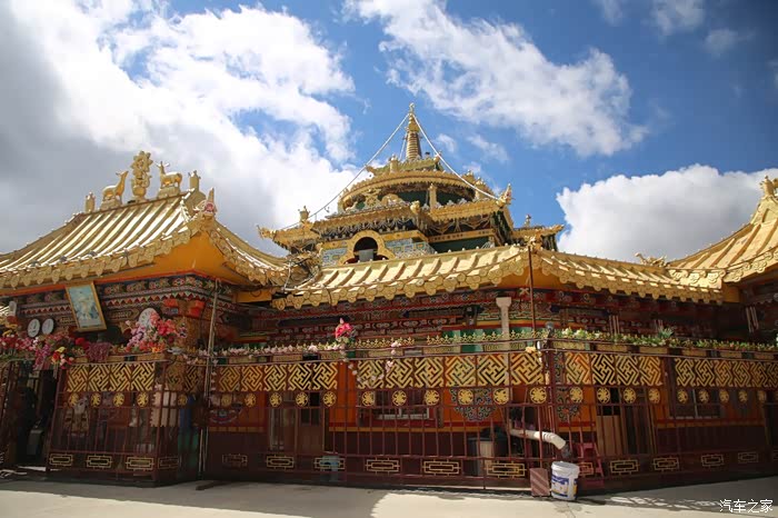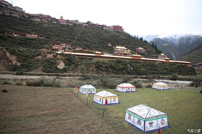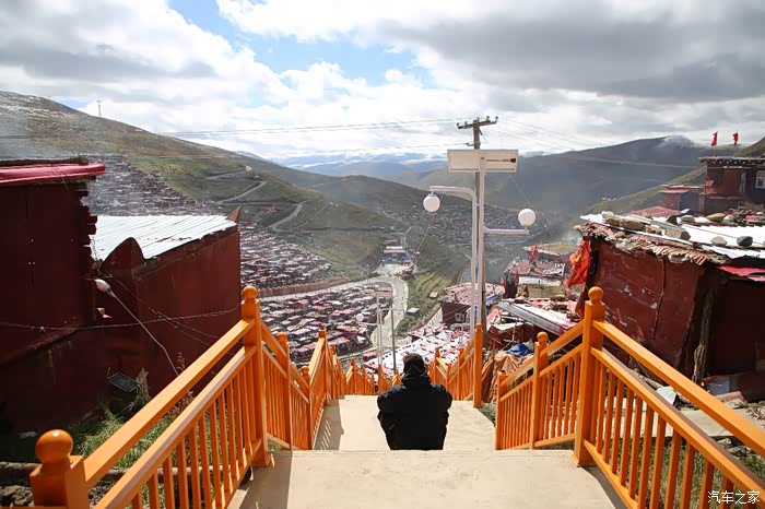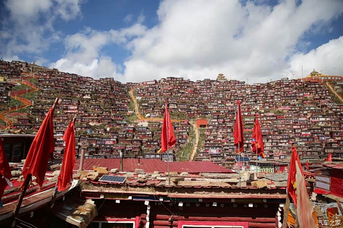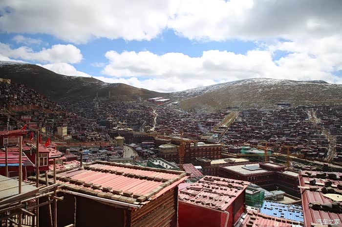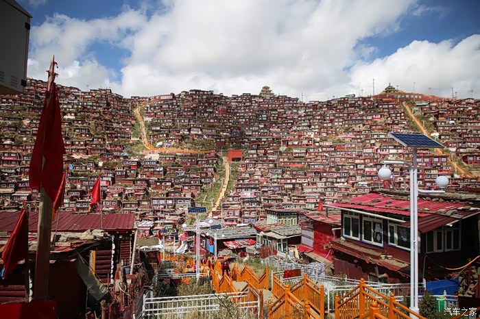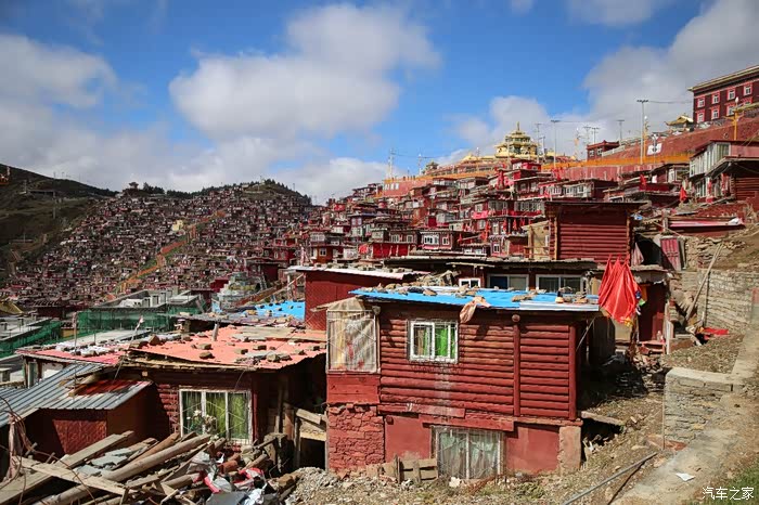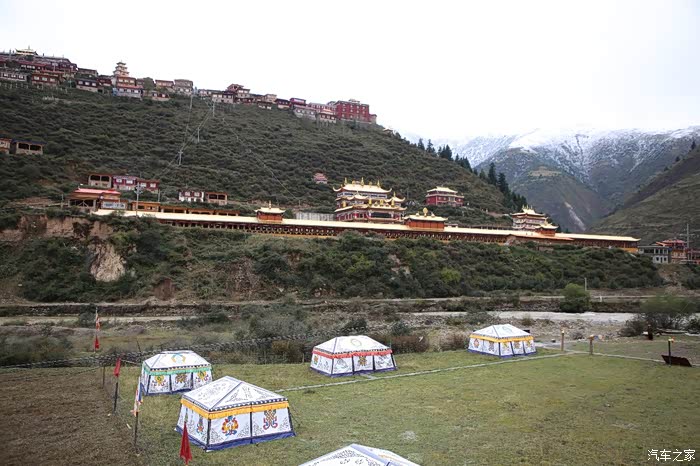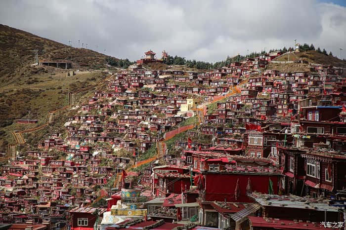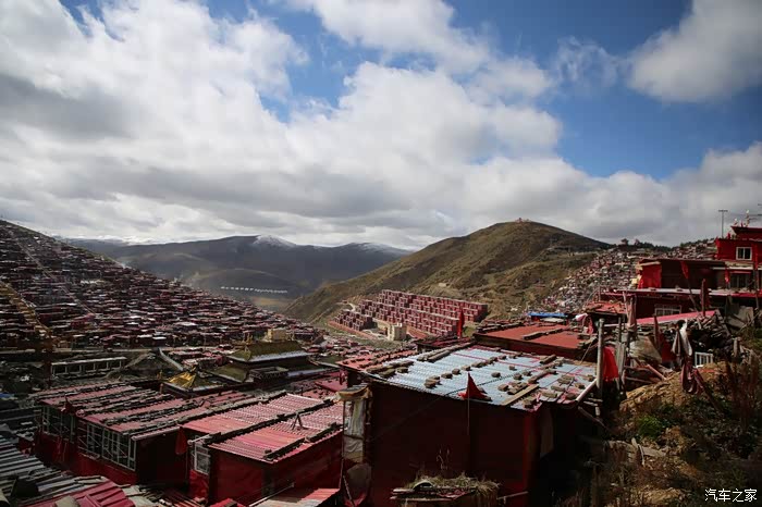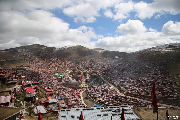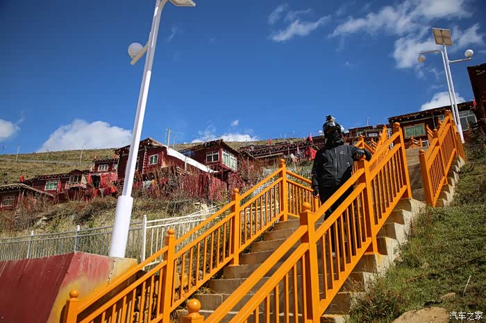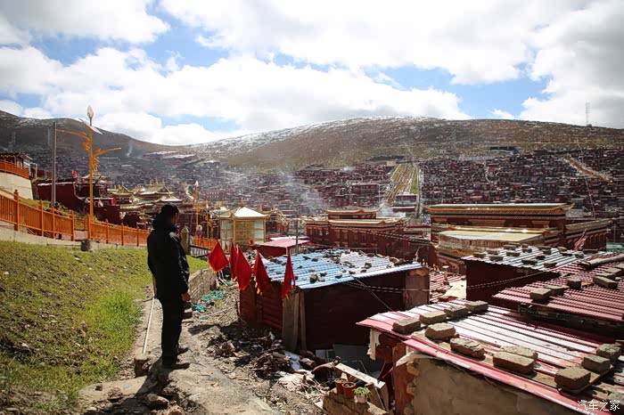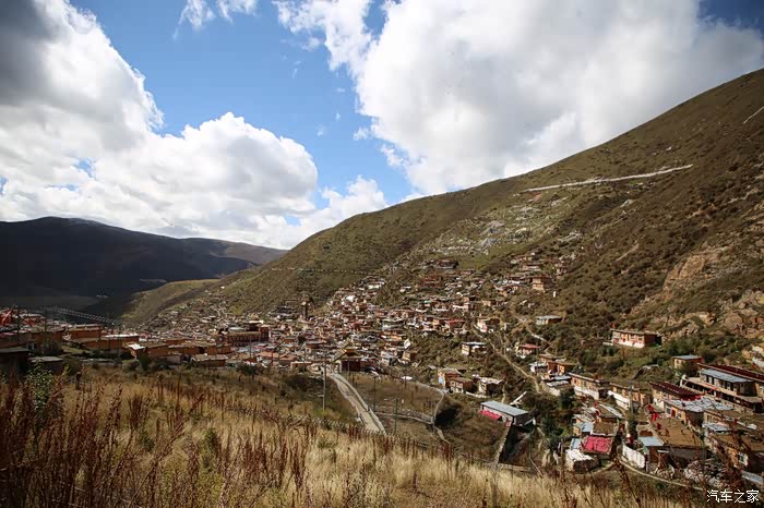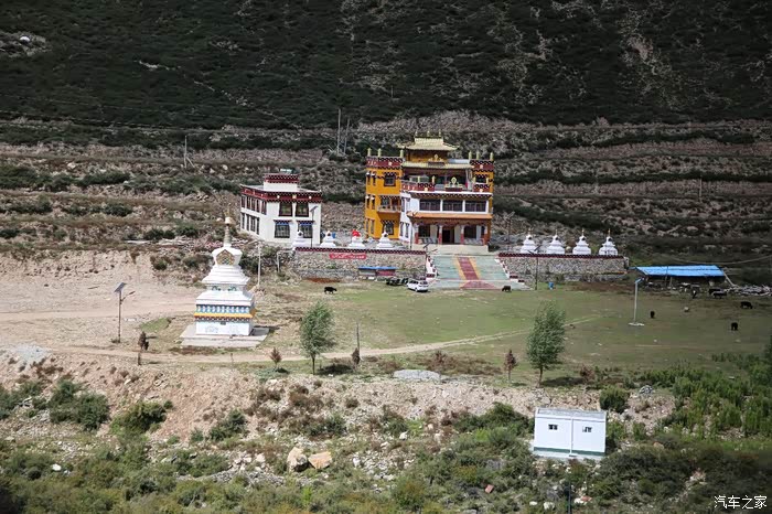 从这边色达只需要180公里单程,中途会有一些小景点,寺庙比较多,毕竟这边佛文化很盛行,不只是五明佛学院很出名,这边其他出名的佛学院也很多,佛学院就类似内地的大学,五明可以理解为象雄文化也就是古西藏文明的五大类学科,分别是工艺学、逻辑学、语言学、佛学和医学,后两种学科比较出名,这边经常会举办寺院间的辩经,中途会有一个岔路口,一定要看清楚,继续前行是到色达县的,而且左转是到洛若乡五明佛学院的,车子坚持到这里找到了一个村民简单补了下可以继续上路,这边有很多检查站,主要是检查大车,怕他们偷到木材设立的,现在这个季节来佛学院的游客不是很多。