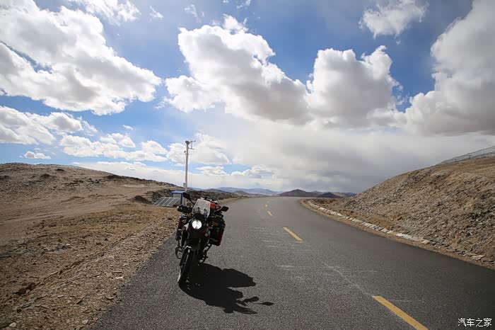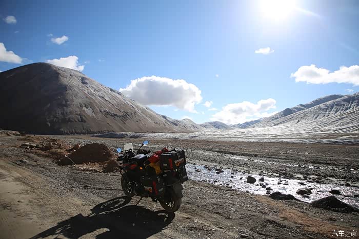 沿路会有很多岔路口,摩托车直接骑进去就可以看到新藏线的景观,虽然没有川藏线上的那么壮观,可是之前看管了新疆的风景,在看看西藏的就是一种视觉升级,路上存在很多暗冰,自己给自己一个暗示不能走夜路,否则一旦结冰就傻眼了,此时给同伴打电话询问了一下状况,他们依然在修车,看来这次是车辆问题集中爆发,化油器版的车在高原真的不占优势,动力衰减现象严重,出问题的几率也高。