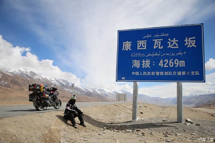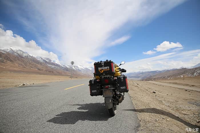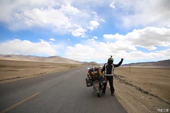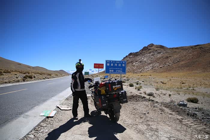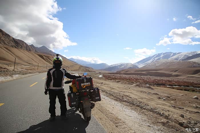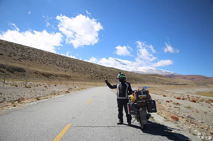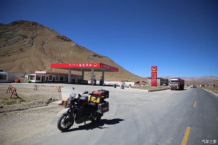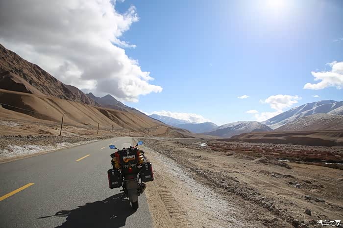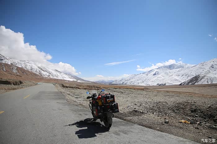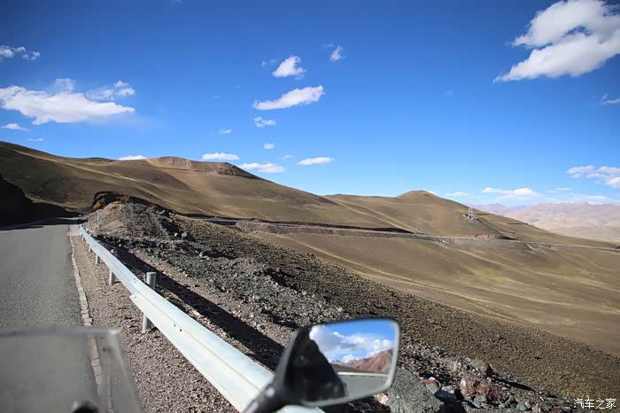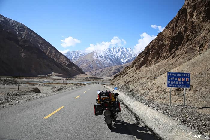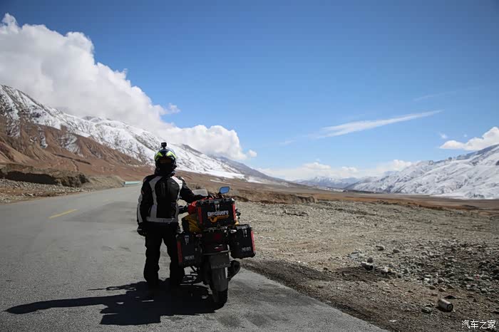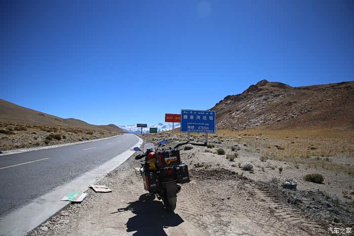 开始骑行,天气很冷,冷的让人无法接受,但是路况极佳,基本看不到炮弹坑,一路速度都飙到了110,此时车子也出现了一个问题,左右两边的反光镜都震松了,无奈的是我还没有扳手,路上也看不到修理店,只能将就着骑,海拔依然不减降低,还是在5000米左右逛游,此时从西藏开往新疆的车开始变多了,陆巡居多,而且从新疆到西藏的车几乎都没有,加油站分布几乎50公里一个,不用担心没油,价格一直维持在9快钱,网上说的私人加油站暂时没看到,都是正规加油站。