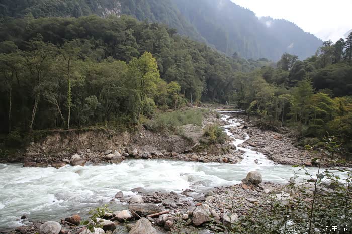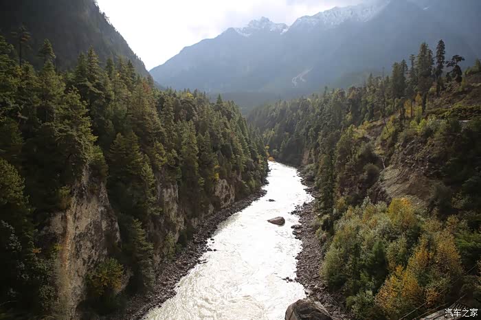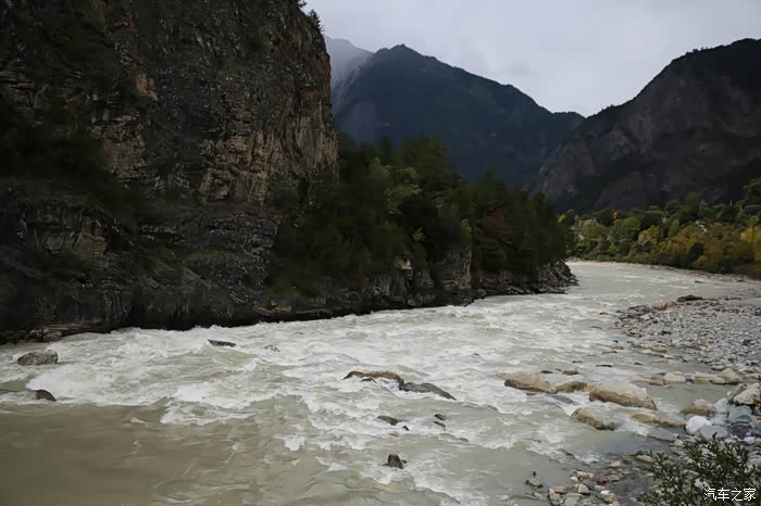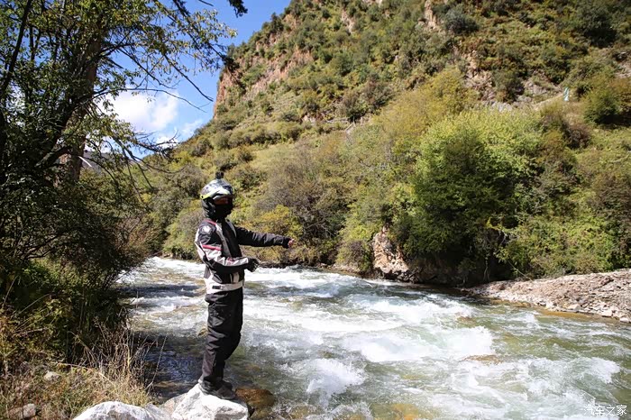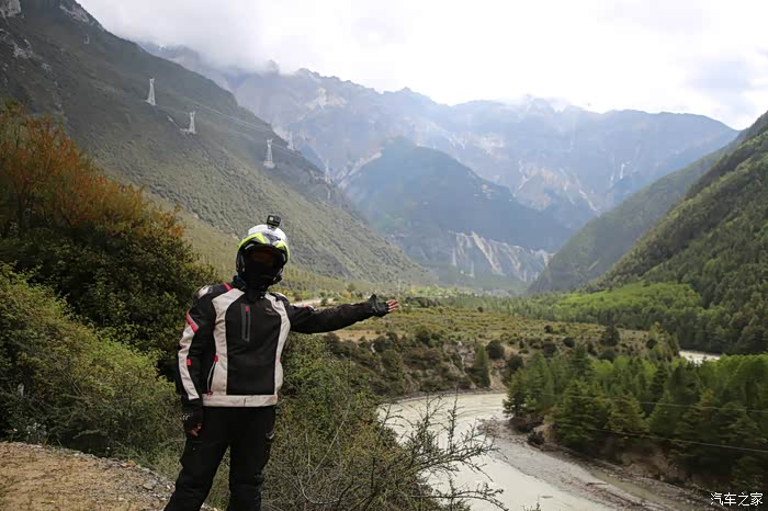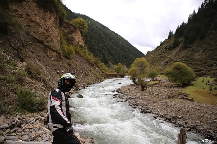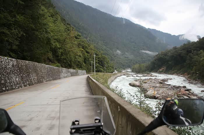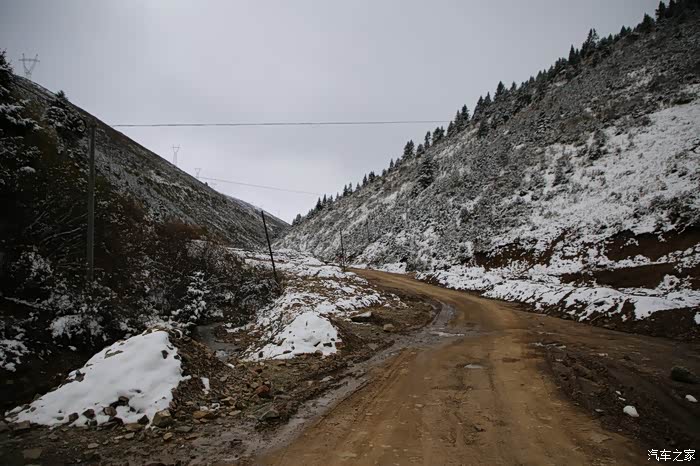 大约走了30公里,进入下坡路段雪就不下了,气温也升上来了,远方理塘方向天空也是乌云密布,今天看来要和雨雪干上了,和同伴商量了一下中午饭就先不吃了,直接在后面的镇子吃,当时也不知道后面镇子有多远,直接跳过了理塘,沿着318没走多远,开始了北上的道路,路是省道S217,几乎是沿着雅砻江在走,可以说一路上全在下雨和下雪,阴霾天气让骑行体验一落千丈,山上下雪路面结冰,山下下雨到处积水,还好没有泥浆路。