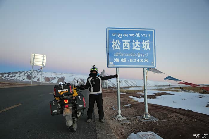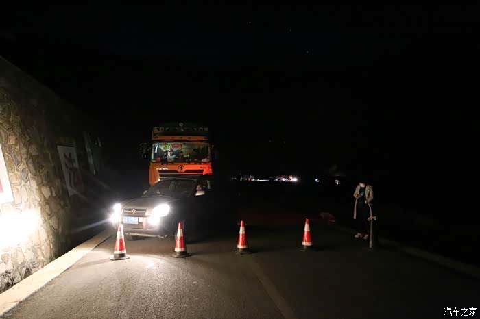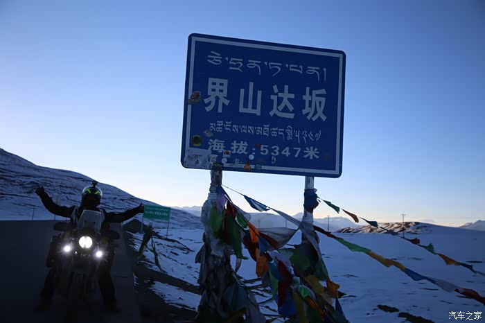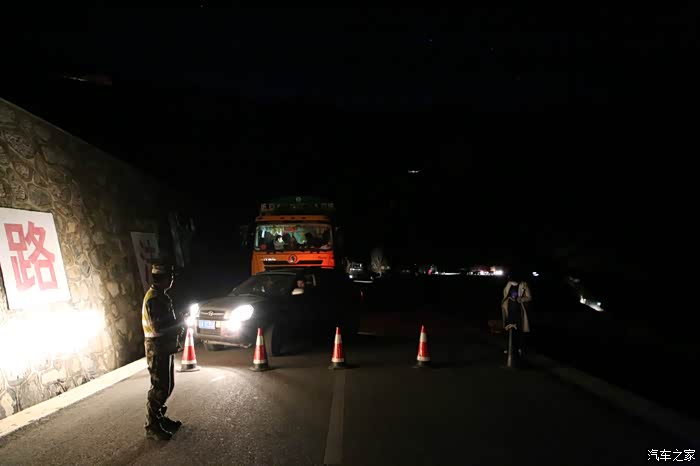 领了一张限速单开始继续行程了,后面的路还很长,已经来不及拍照了,天已经开始黑了,三大达坂都要翻,车高反严重,界山达坂刚翻过去会经历一阵连续炮弹搓板坑,几乎所有人都会飞车,可以说是避无可避,我几乎要摔车,幸好控制住了,后来在程度发现大架子螺丝掉了,所以龙头特别抖,天开始变的让人无法接受的冷,空气几乎都要凝结了,换上滑雪手套都感觉要冻僵了,泉水湖前面不远有个居住的地方松西乡,如果这里不住的话只能到100公里外的多玛,很多路都是山路,夜里风很大还下雪,路上我基本上不敢骑太快,一个是因为路面很多暗坑看不到,还有就是下雪路滑转完多,越走心理越没底,时间都到了夜里10点多,最后只能傍大车的后后腿了,跟着大车后面慢慢的磨,有速度快的大车我就换大腿跟,不过夜里也没多少大车。