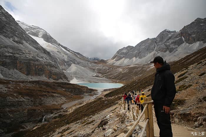 最远的地方是牛奶海,比五色海强一点点,最佳拍摄位置是在左侧的山坡上,需要绕着湖走一段路程,少数人会选择这样,景区今天飞无人机没人管,天空上至少有4架,和五色海一样均是三面环雪山,驻足观看了10分钟果断离开,景色太平凡,回程路就轻松很多了,一路都是下坡,几乎是不费什么体力,就这个时间段竟然还有人往里面走,看样子是要在湖边扎营的样子。