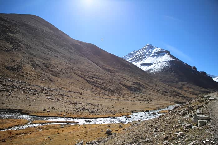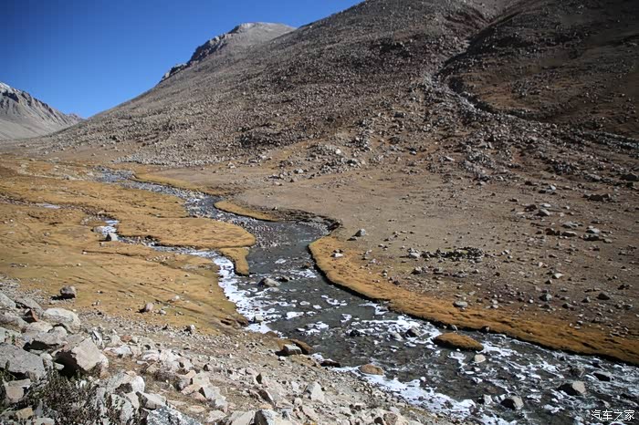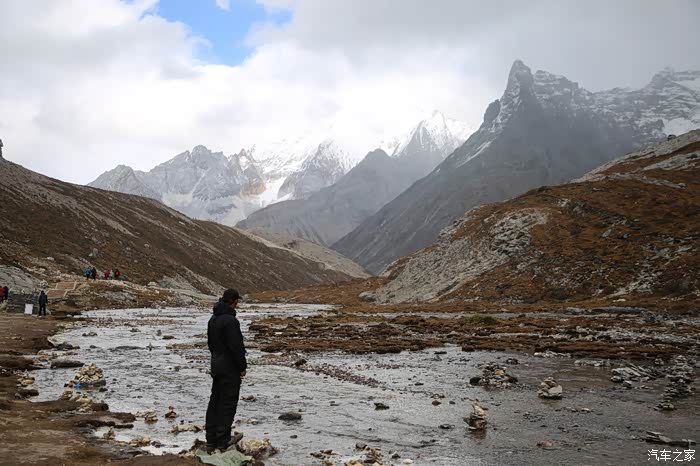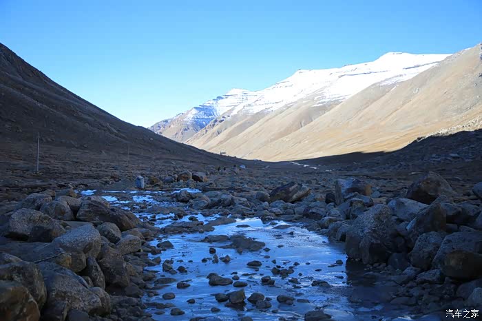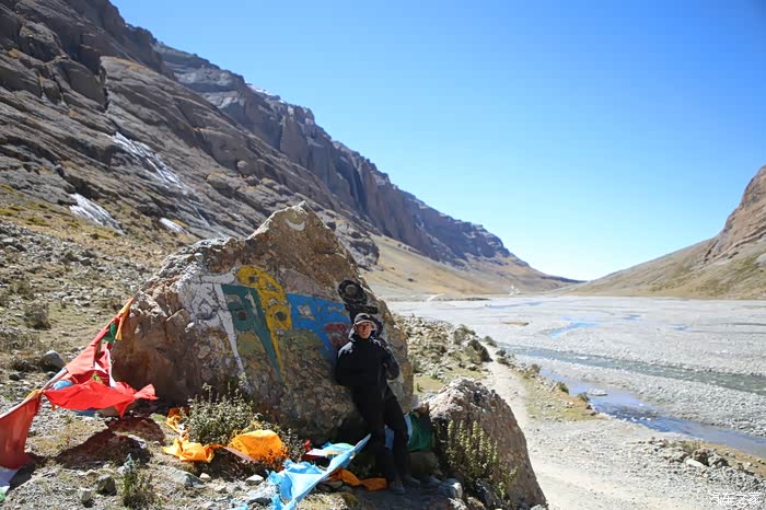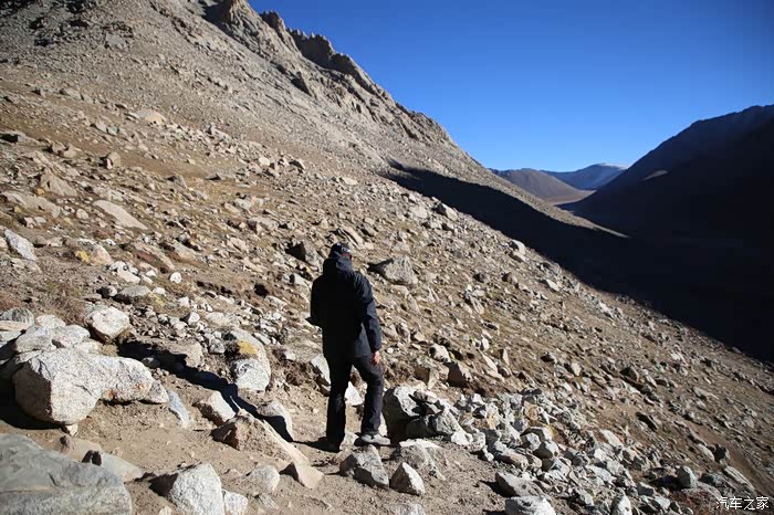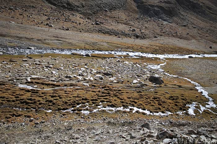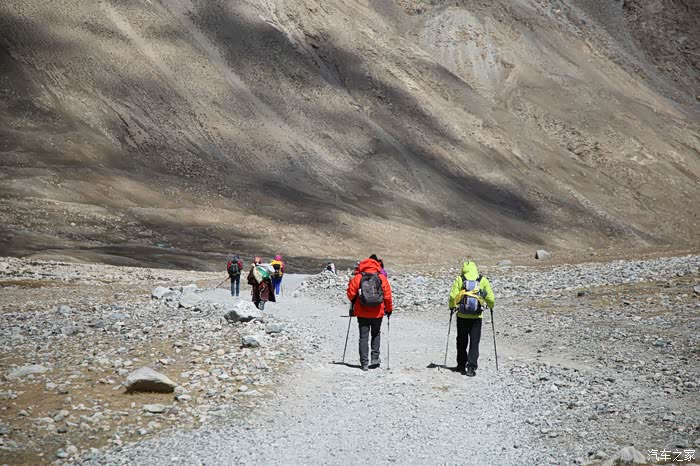 吃饱喝足继续走,方便面确实还是很方便的,一路上可以看到藏民也在徒步,他们走的很快,明显是锻炼出来的,和尼泊尔山上那些穿人字拖在山地爬的夏尔巴一样,无论男女老少脚力都很好,穿的也比较破破烂烂,和旁边文艺说自己牛X与跟藏民讲人生哲理的人形成了鲜明的对比。中途会路过一些河流,晚上这边会结冰,到了下午基本上都融化了,不要轻易的踩上去,落水到不怕本身不深,主要是湿了干不了,容易失温。